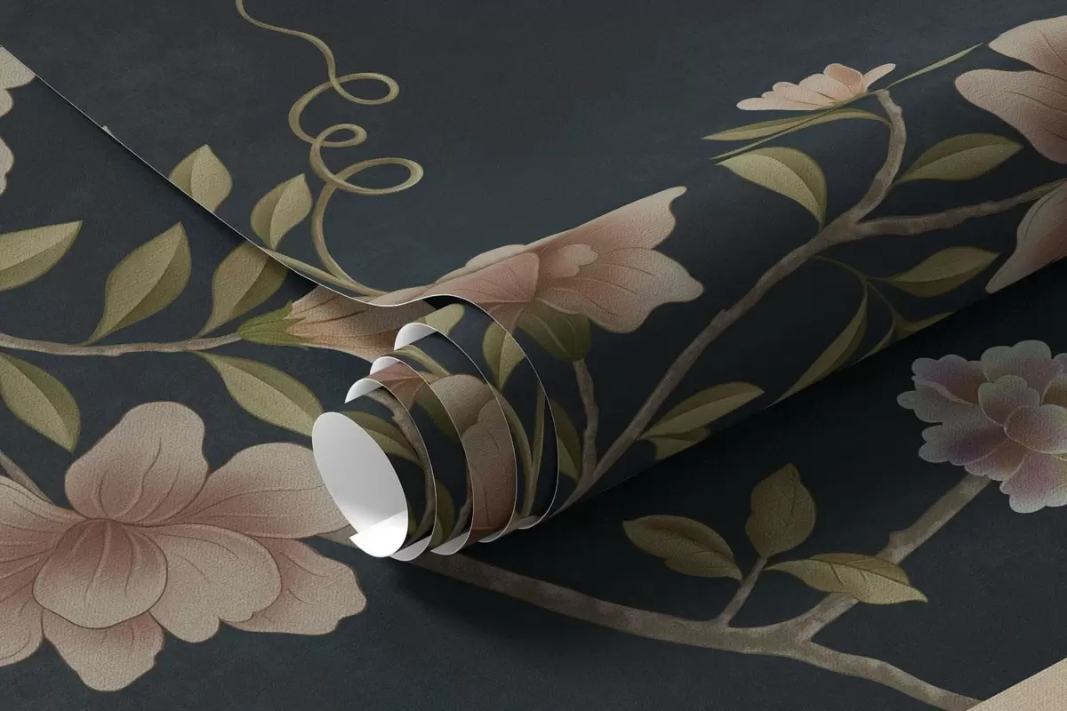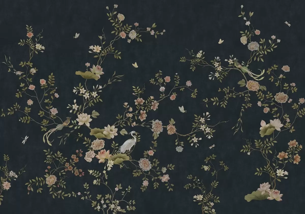 Фототапет Цъфтящи клони с птици на тъмен фон Nr w05416v3