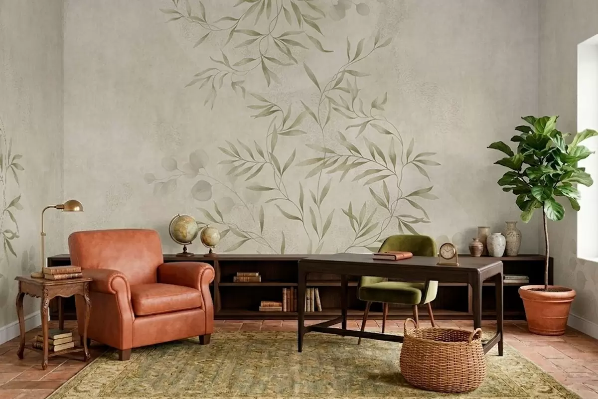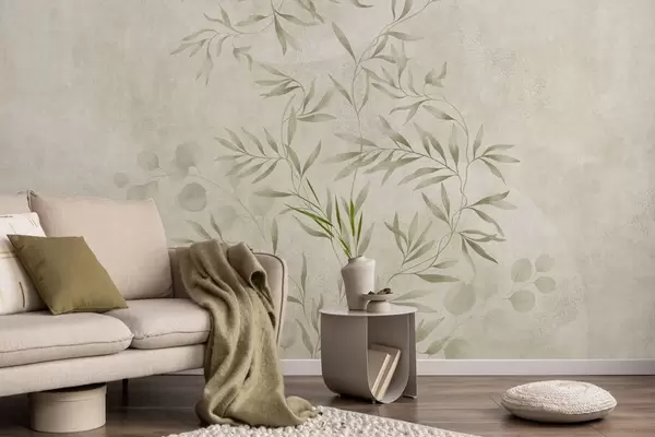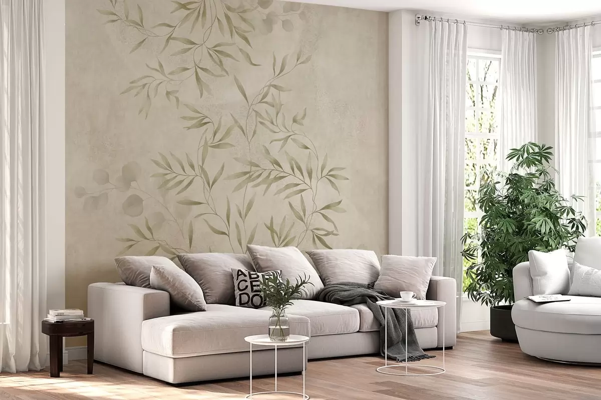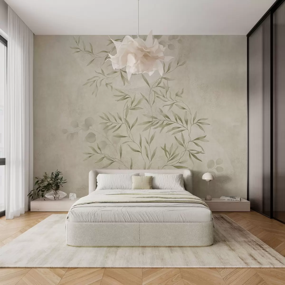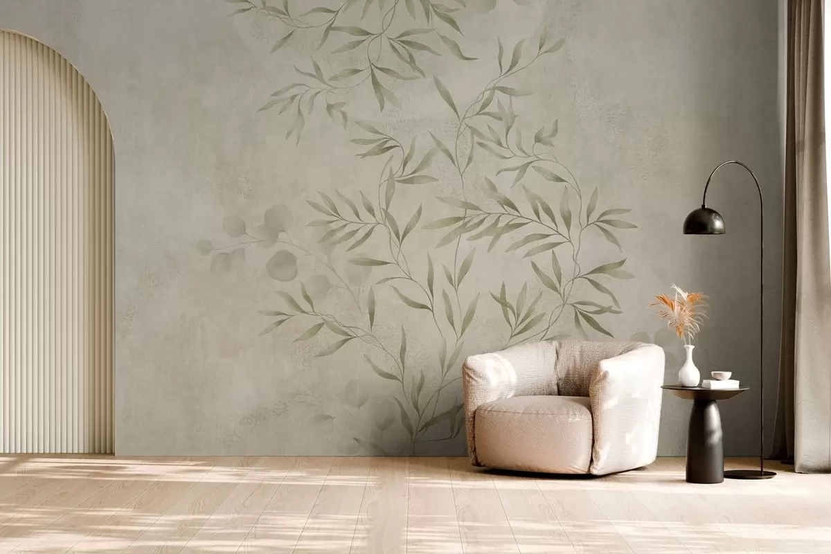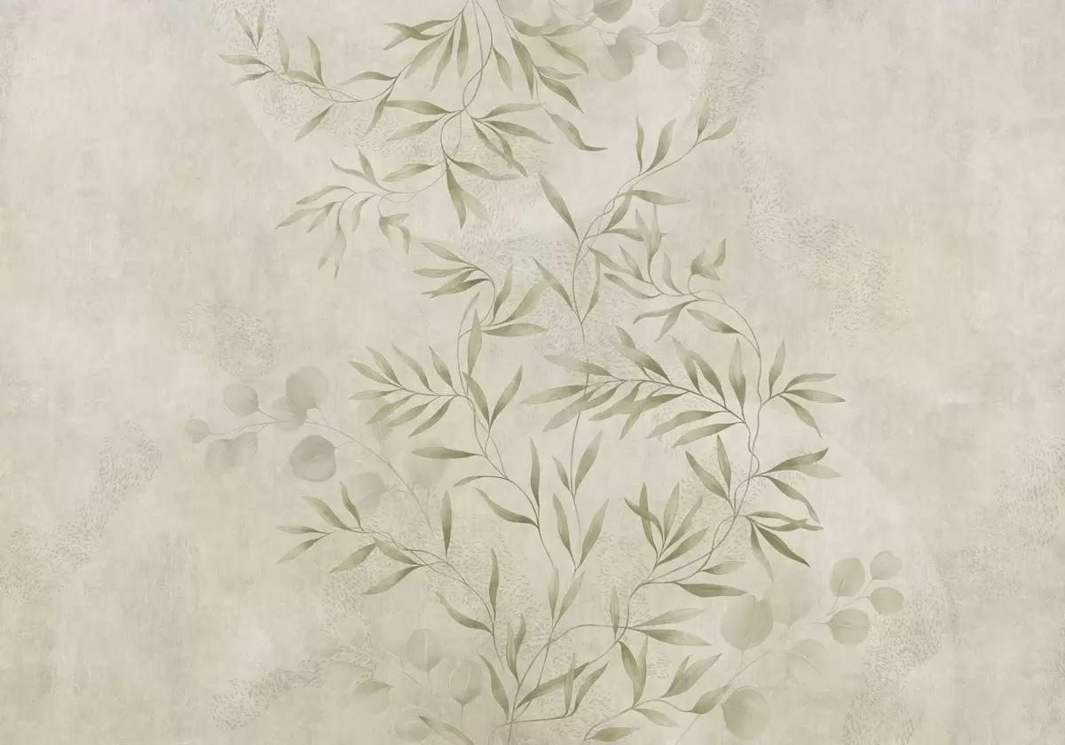 Фототапет Ботаничен мотив в светлозелени нюанси върху текстуриран фон Nr w05424v1