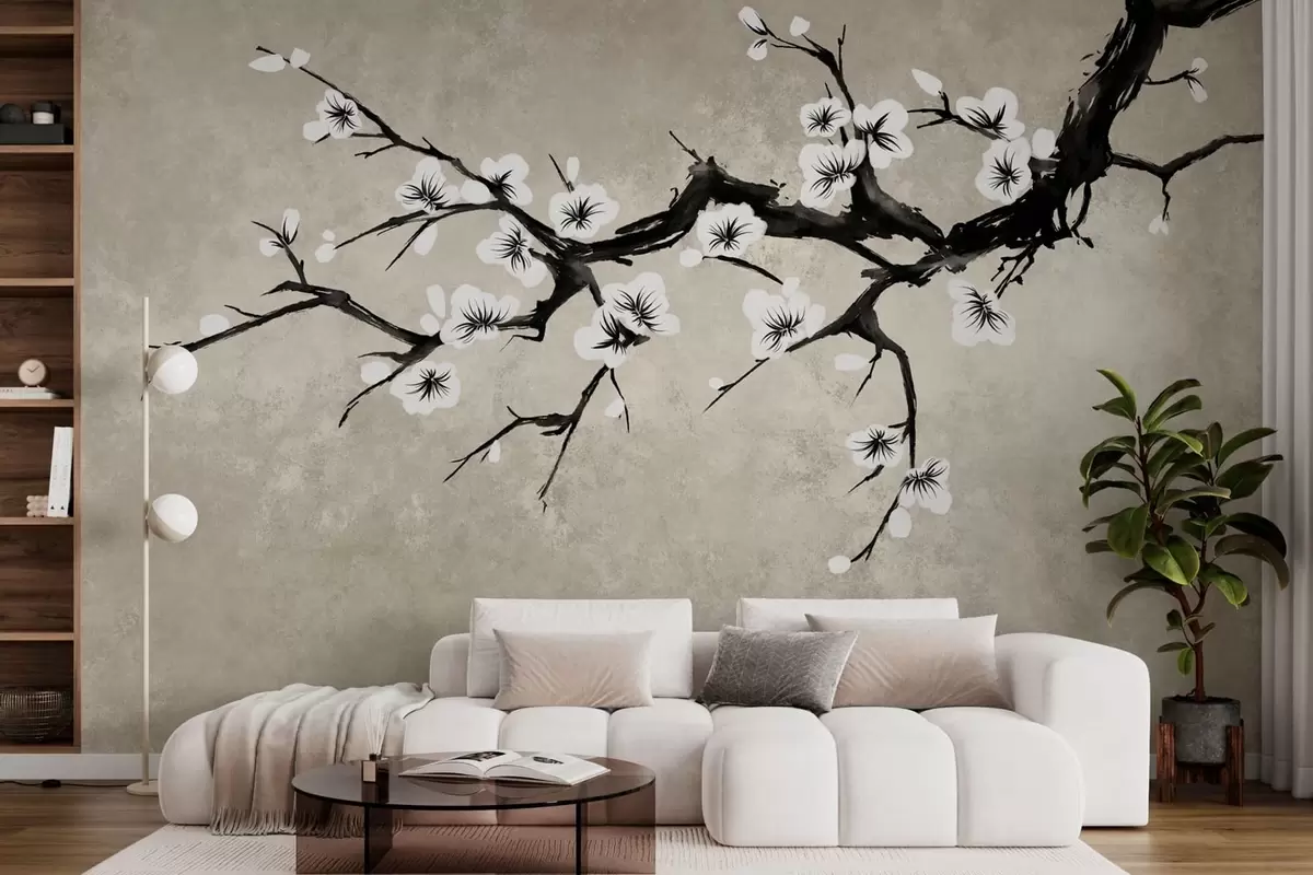 Фототапет Клонче с бели цветове в минималистичен стил Nr w05425