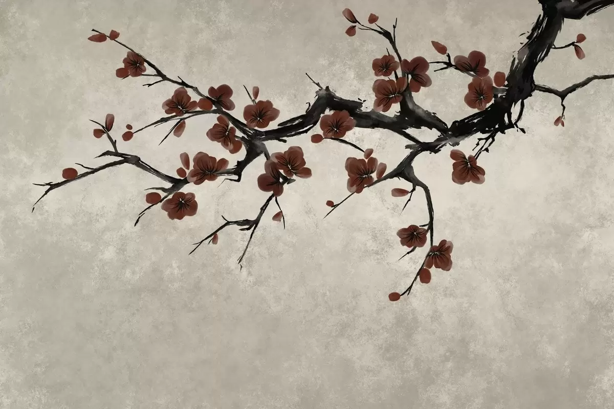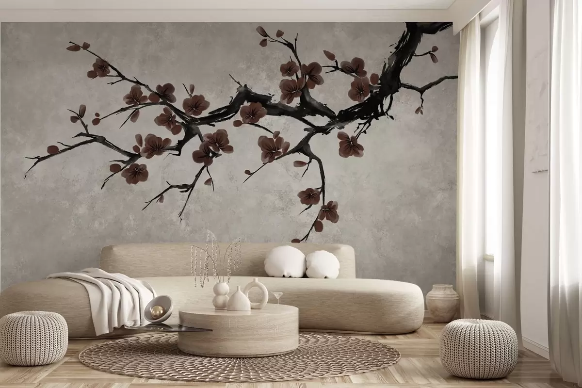 Фототапет Клон с тъмночервени цветове на неутрален фон Nr w05425v1