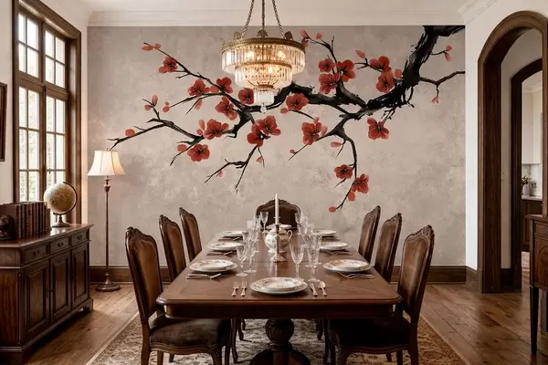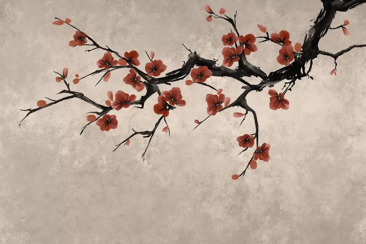 Фототапет Цъфнал клон в източен стил на бежов фон Nr w05425v4