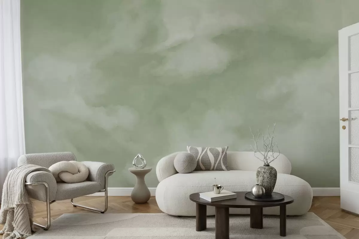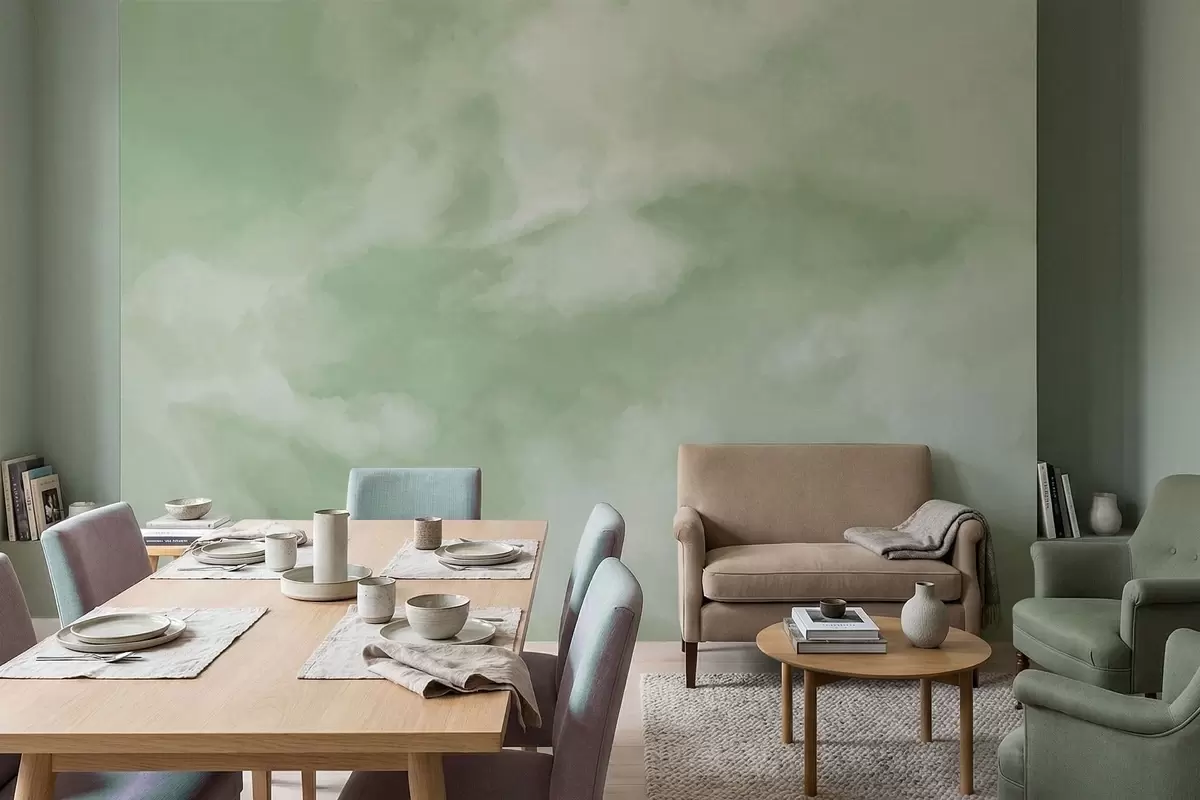 Фототапет Мек, облачен фон в нежни зелени нюанси Nr w05426v2