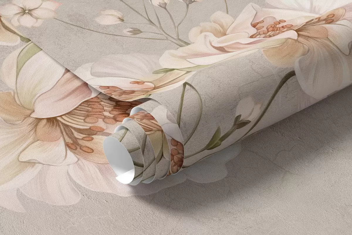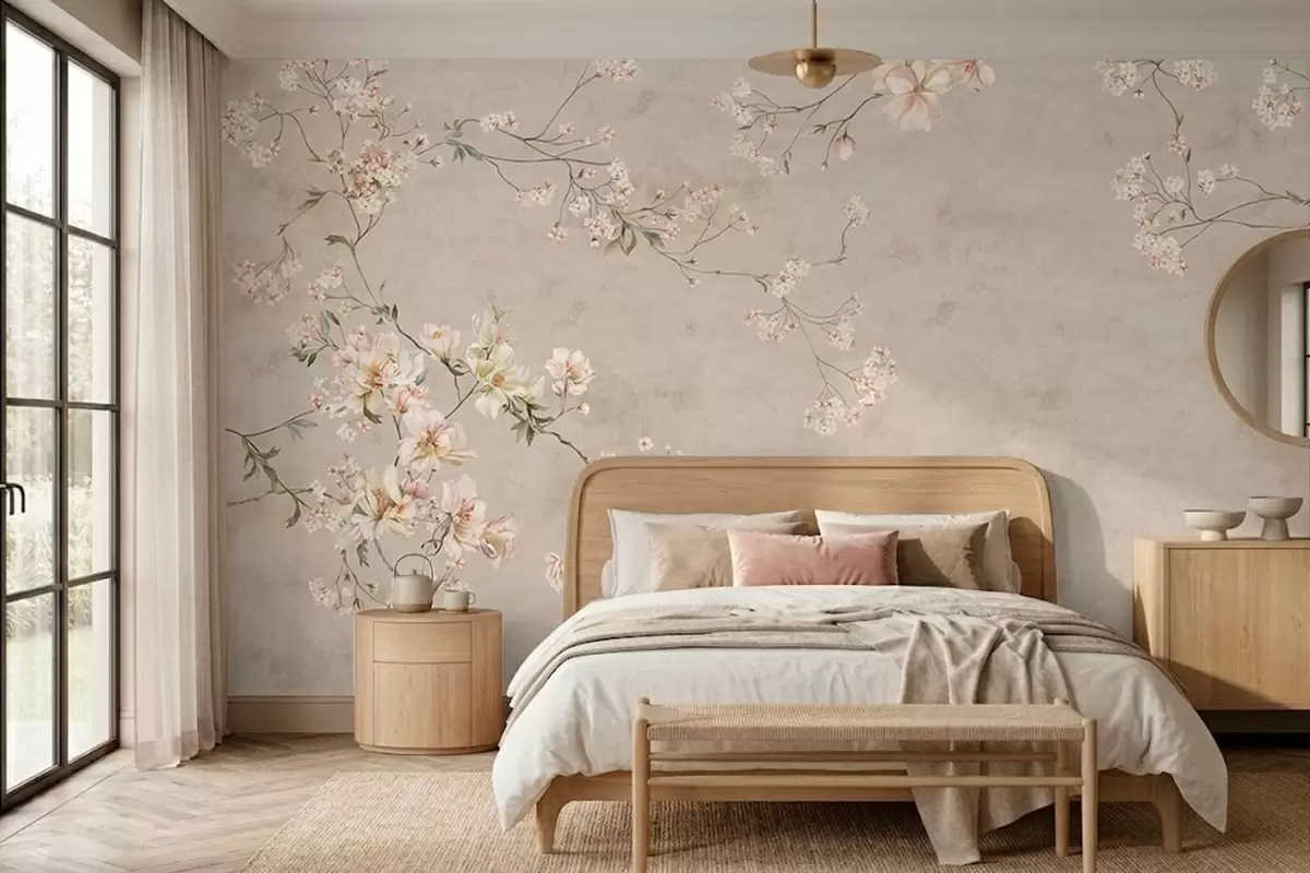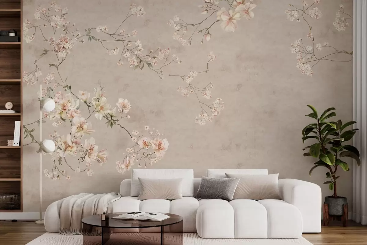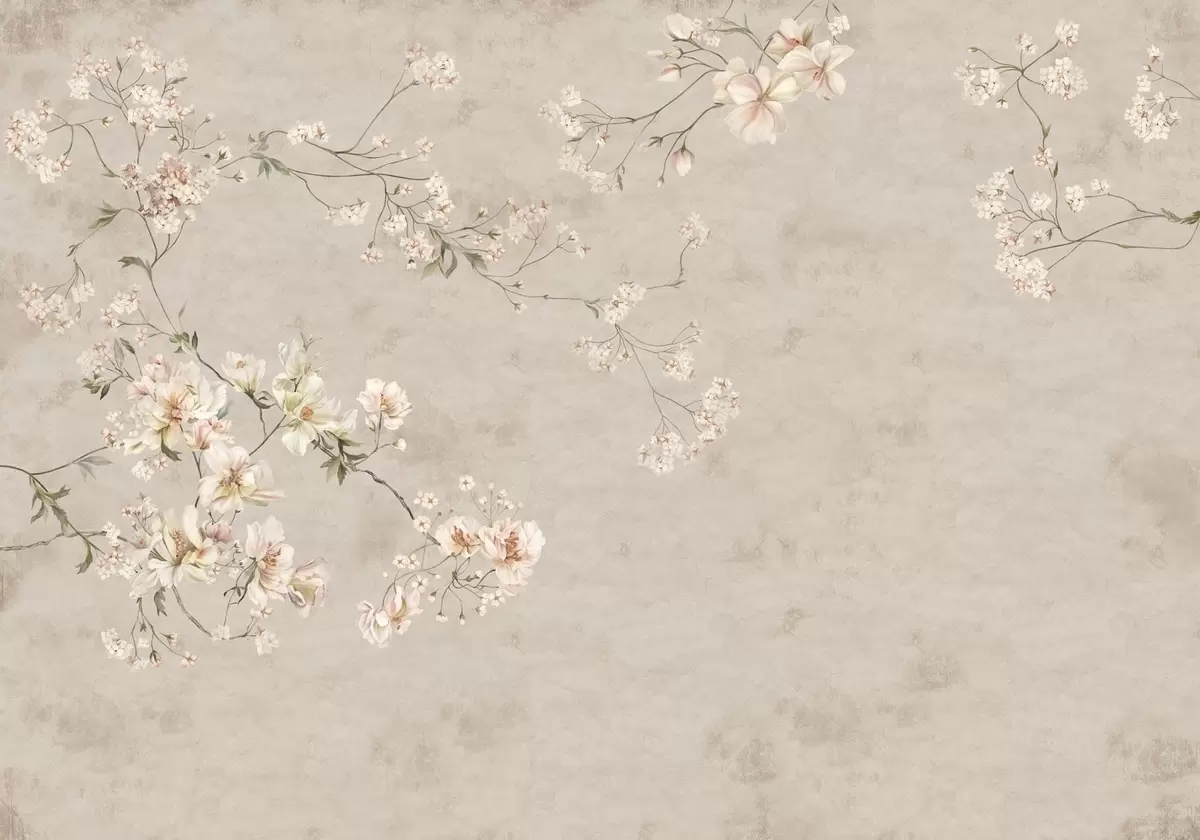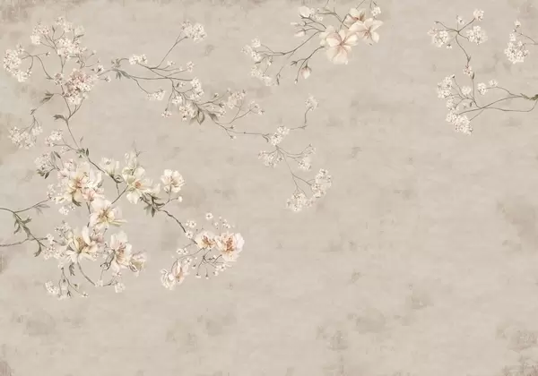 Фототапет Деликатни флорални мотиви в стил „шинуазри“ върху светъл фон Nr w05427
