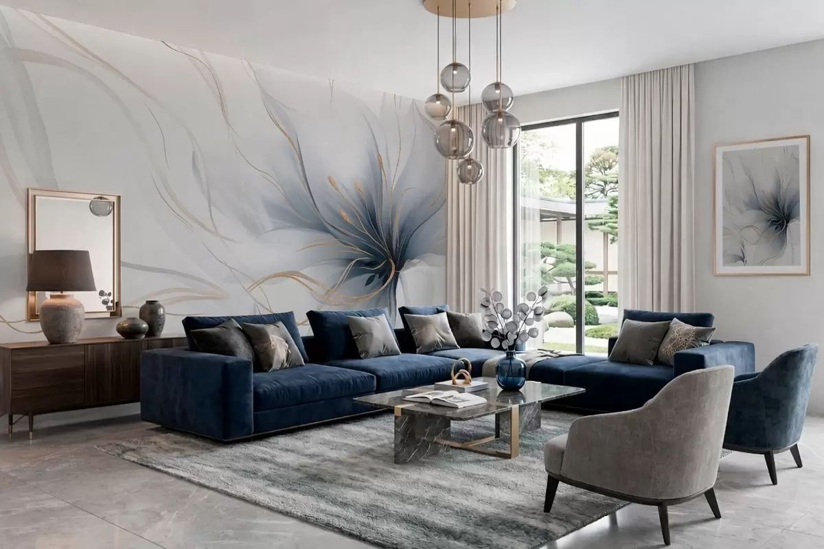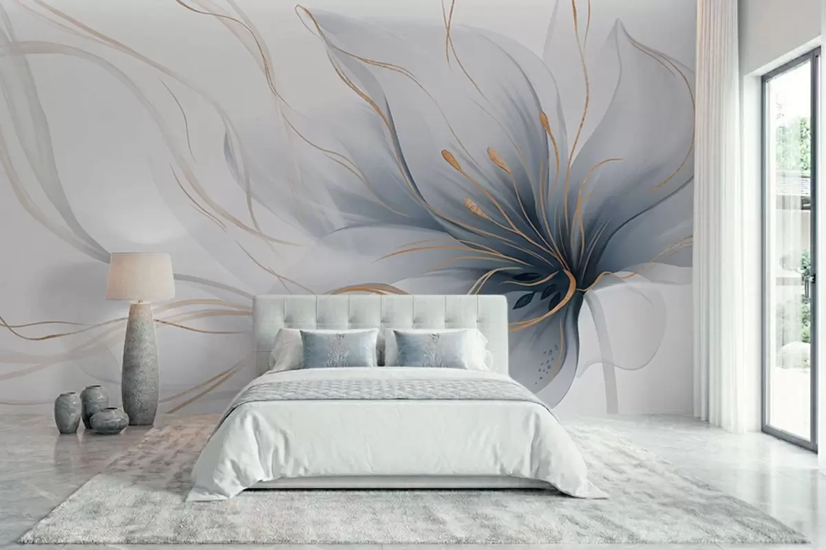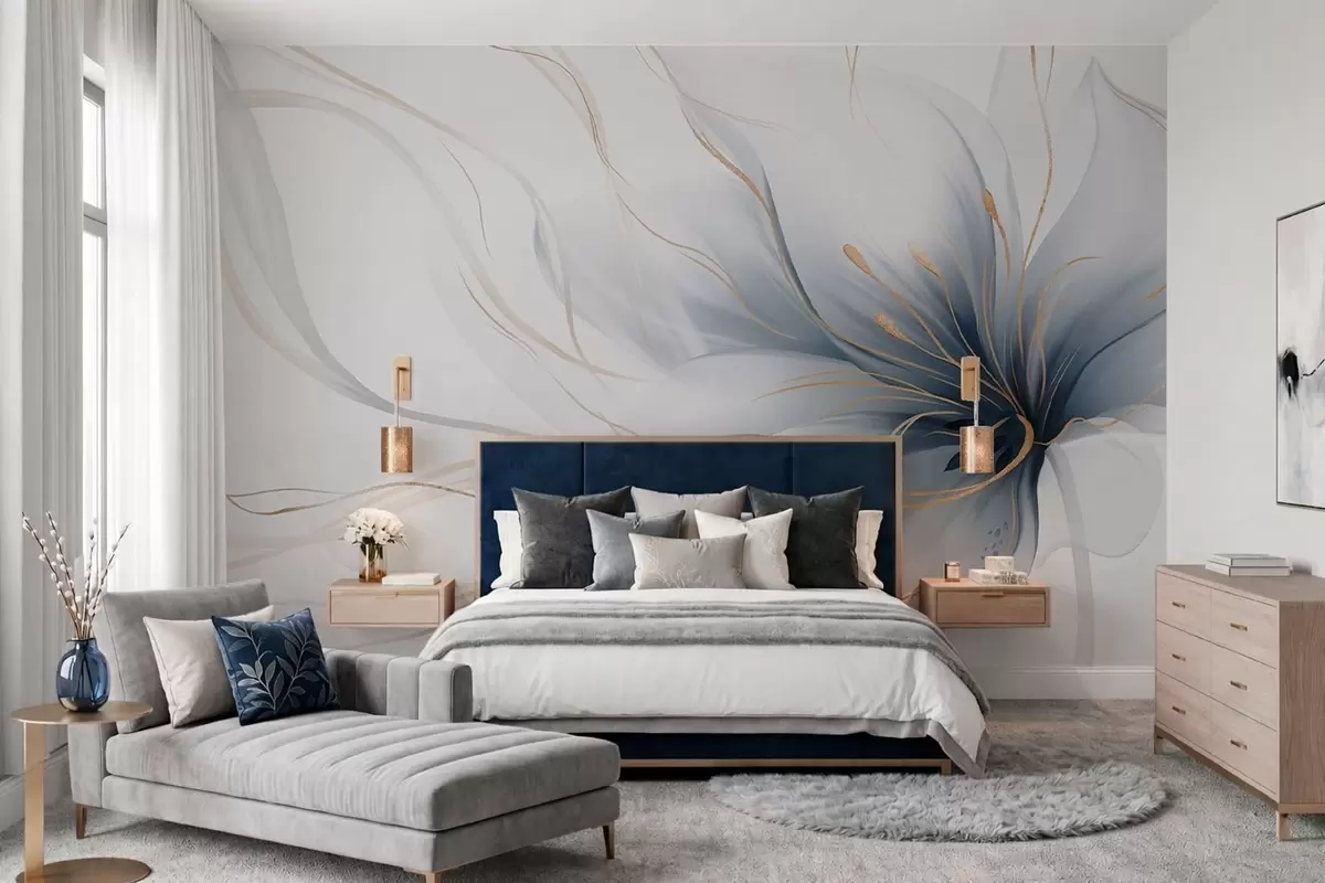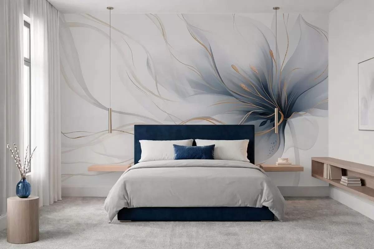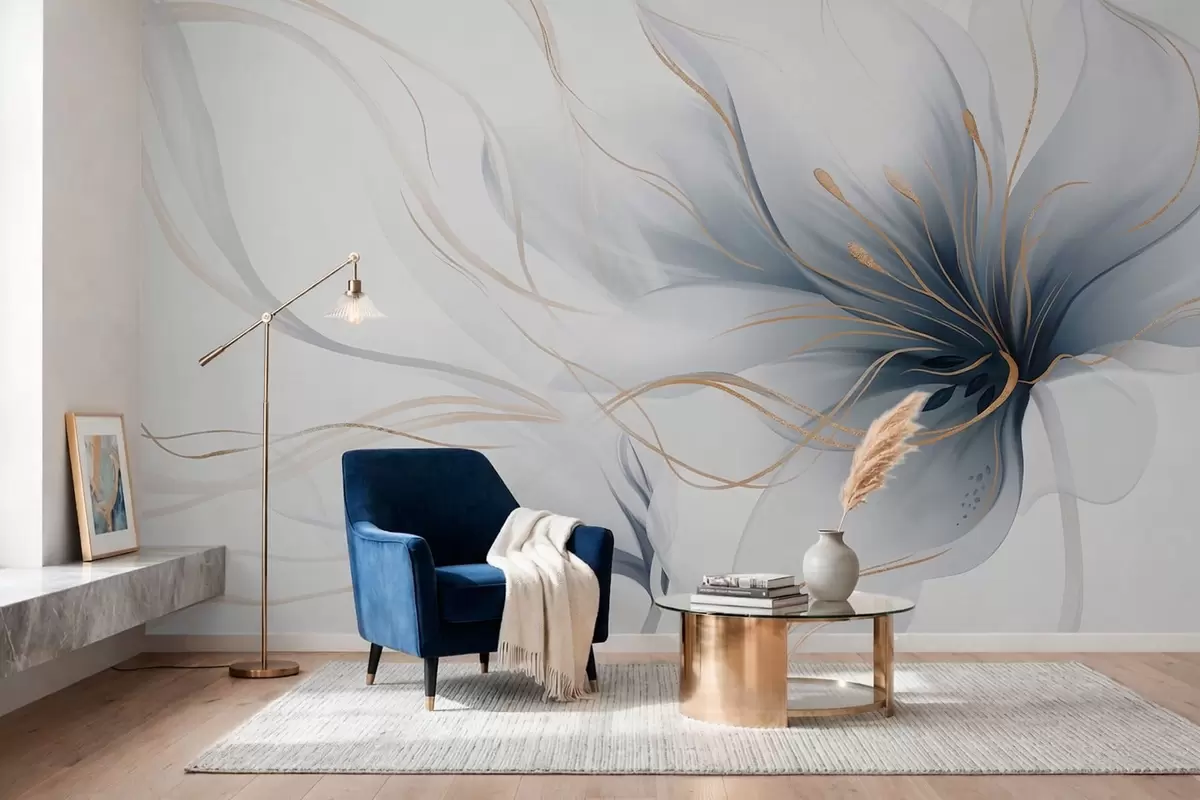 Фототапет Абстрактно синьо цвете с плавни линии в стила „Fluid Art“ Nr w05428