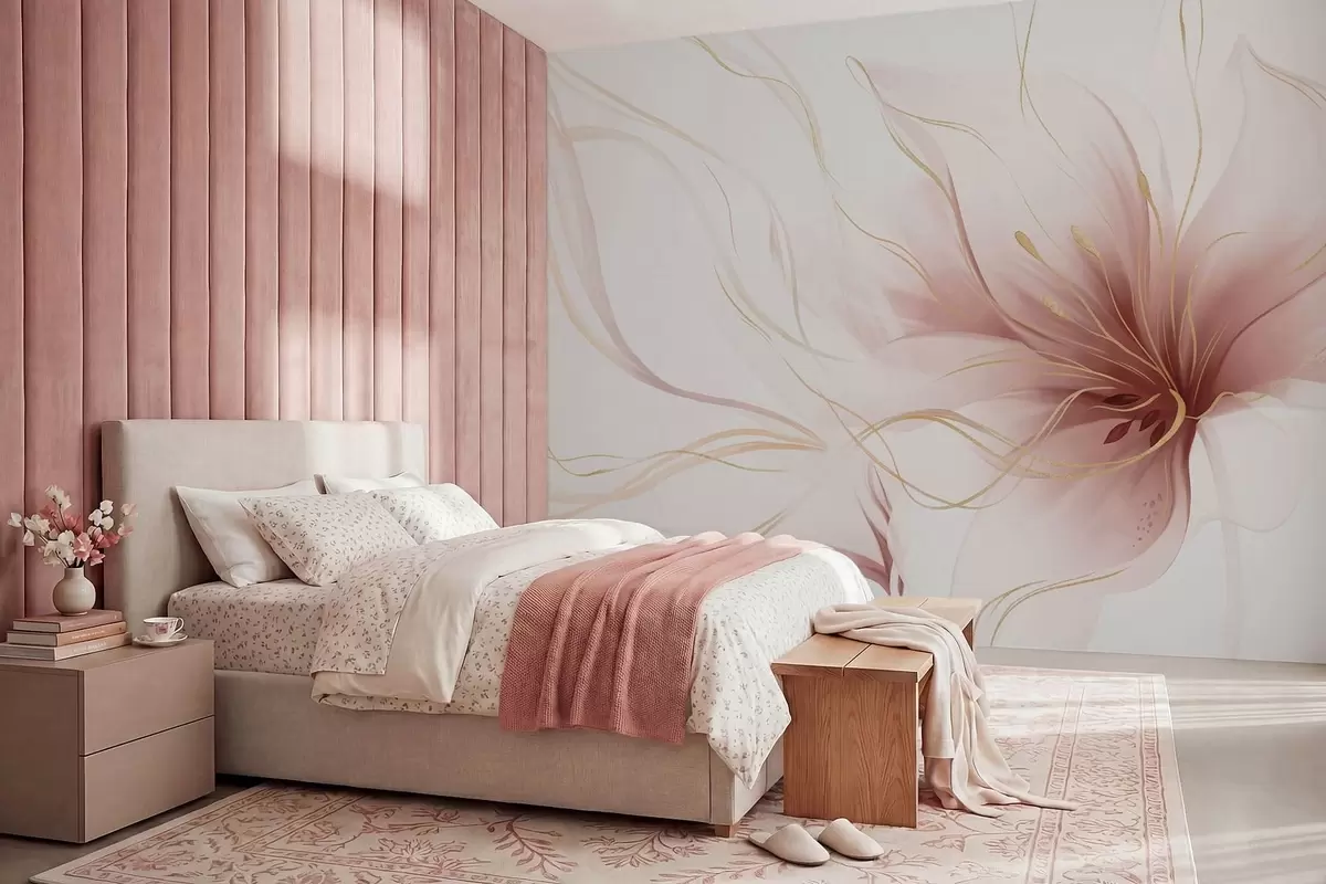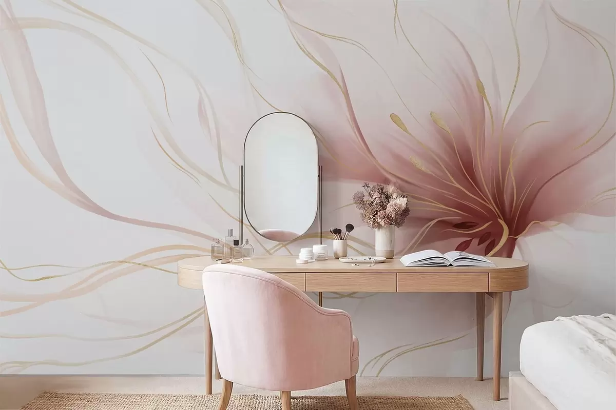 Фототапет Абстрактно розово цвете с плавни линии в стила „Fluid Art“ Nr w05428v1
