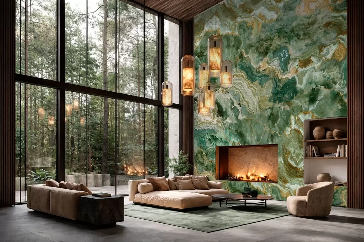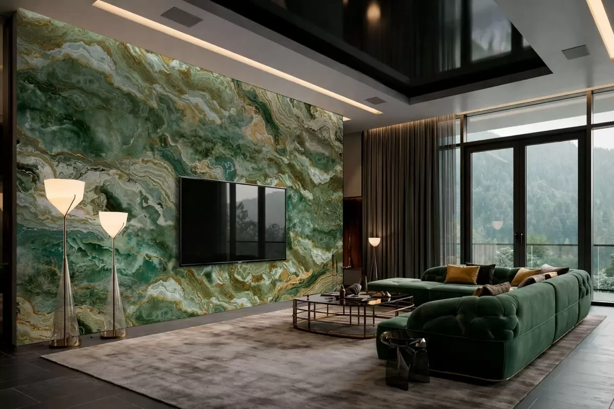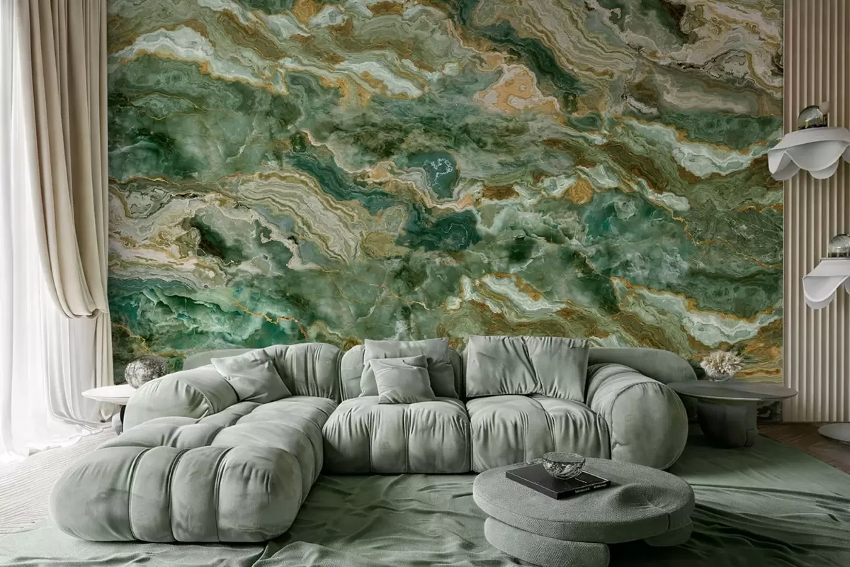 Фототапет Текстура на зелен оникс с плавни, наслоени жилки Nr w05429