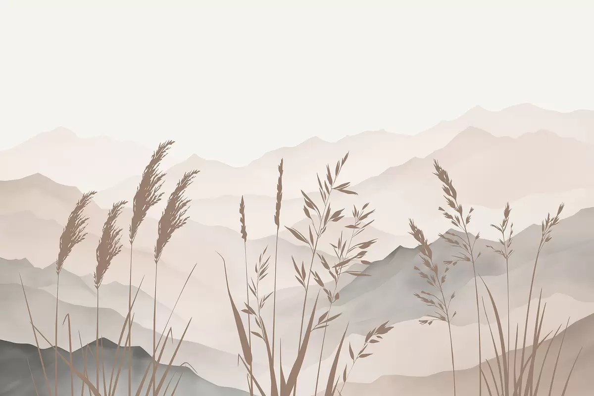 Фототапет Силуети на трева на фона на планините Nr w05501v1