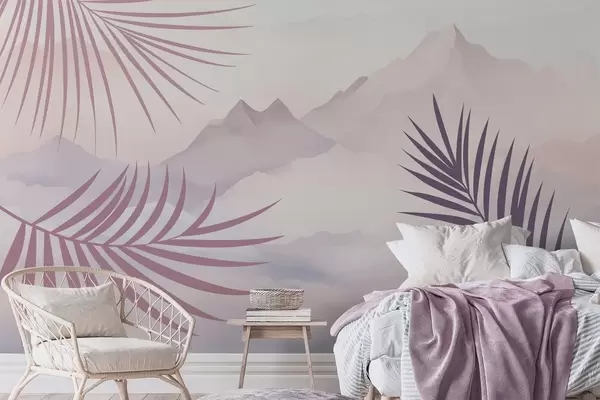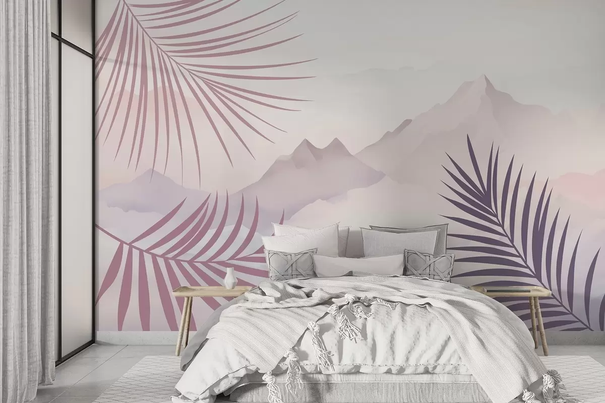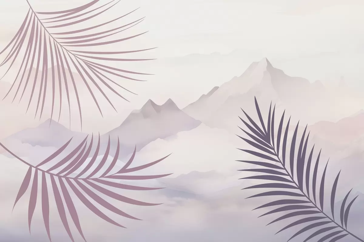 Фототапет Палмови листа на фона на планините Nr w05548v1