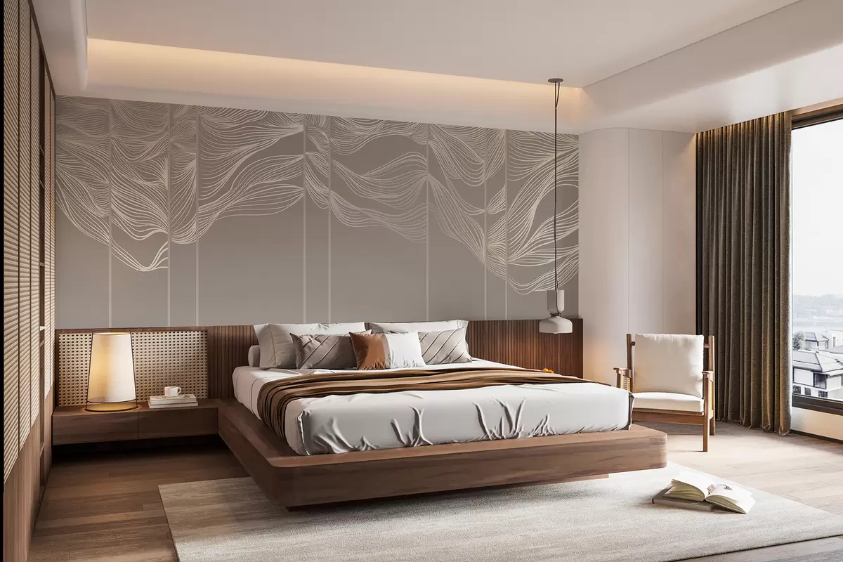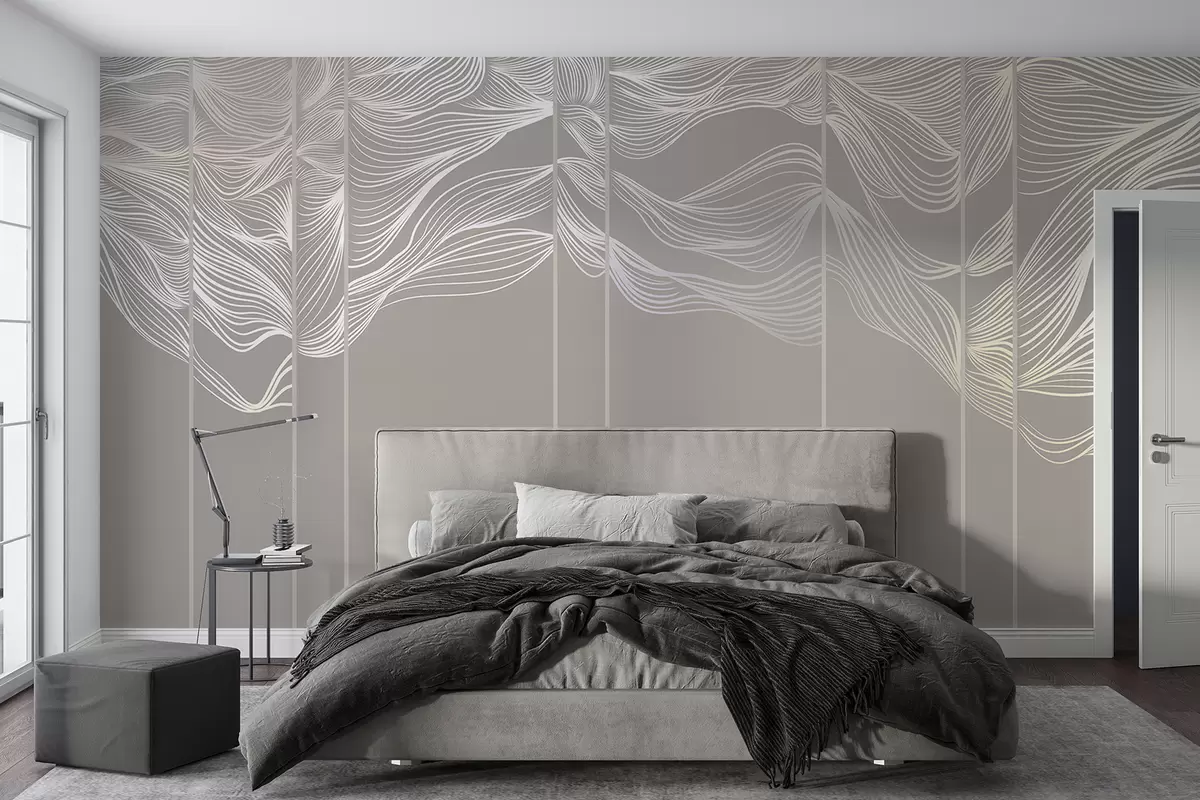 Фототапет Течащи бели абстрактни вълни на светлокафяв фон Nr w08263