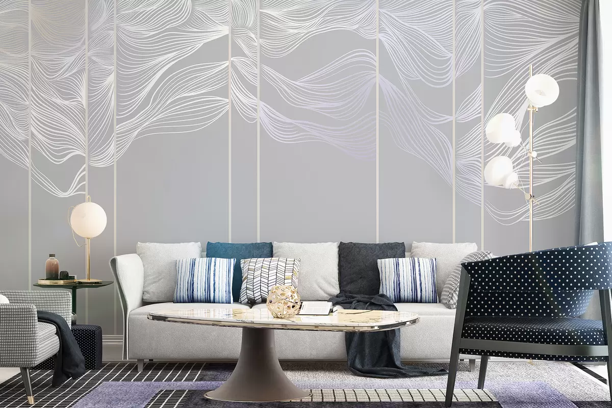 Фототапет Течащи бели абстрактни вълни на светлосив фон Nr w08263v1