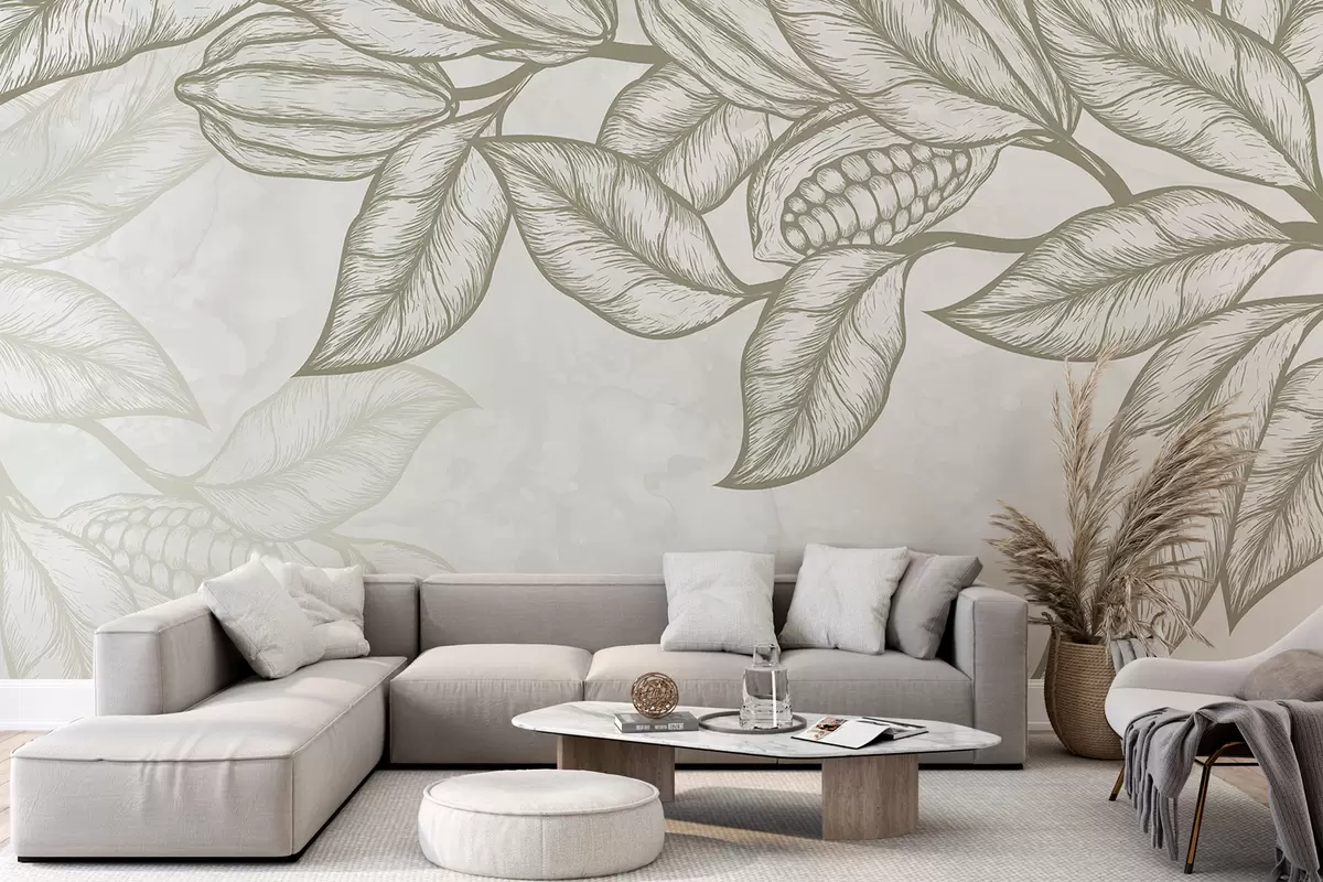 Фототапет Детайлна линейна рисунка на листа и листа от какао в естествен, органичен печат Nr w08334