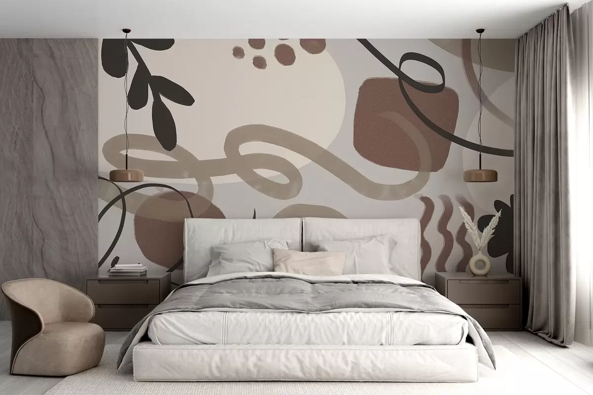 Фототапет Абстрактен текстуриран минималистичен модерен принт с форми в земни тонове на кафяво, бежово и черно Nr w08384