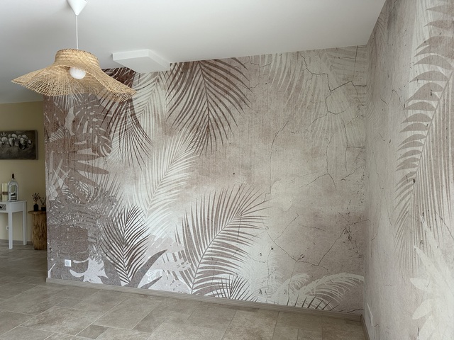 Можете да почистите тапетите много внимателно с леко влажна гъба. Не препоръчваме обаче да търкате или да използвате почистващи препарати за почистване на тапета, тъй като това може да повреди покритието и цветовете на тапета.