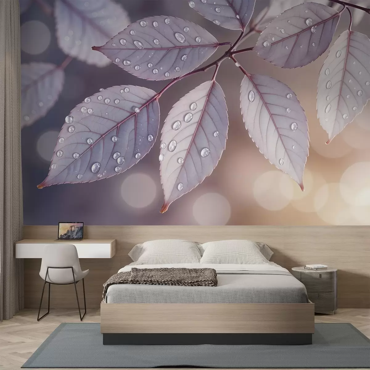 Фототапет Деликатни лилави листа с водни капки, фон с мек фокус w08419