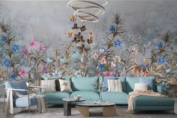 Фототапет Пищен, ярък цветен текстурен печат с цветни цветя и растения със сложни детайли и текстури Nr w08428