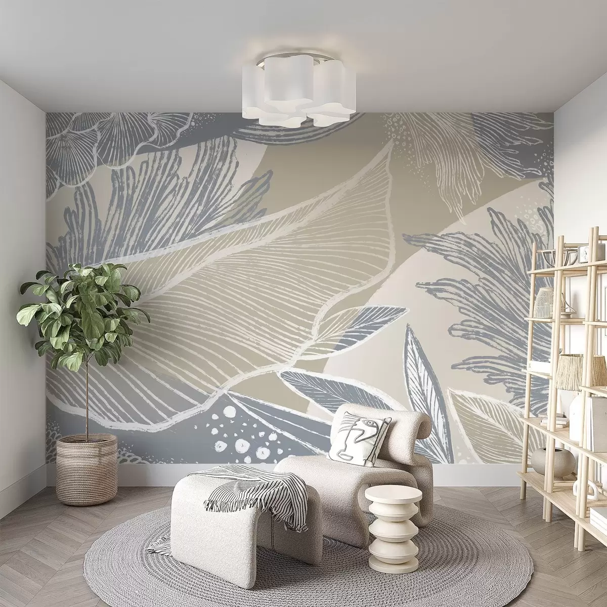 Фототапет Пастелно син и бял абстрактен печат с органични форми и линии с приглушена цветова палитра Nr w08450