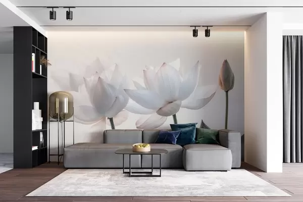 Фототапет Нежни цветя на лотос с венчелистчета и листа Nr w08488