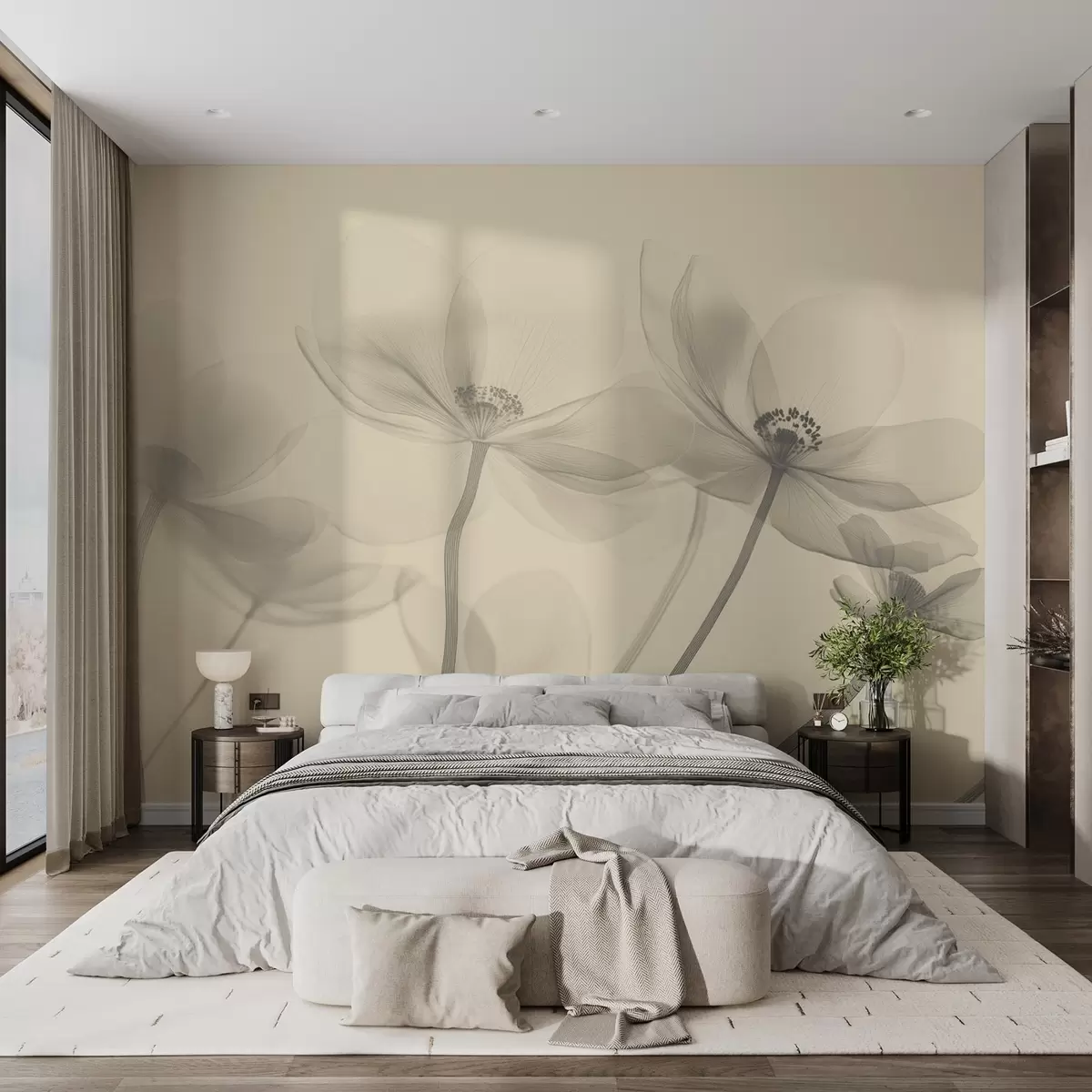 Фототапет Ефирни диви цветя в бежов тон Nr w08490