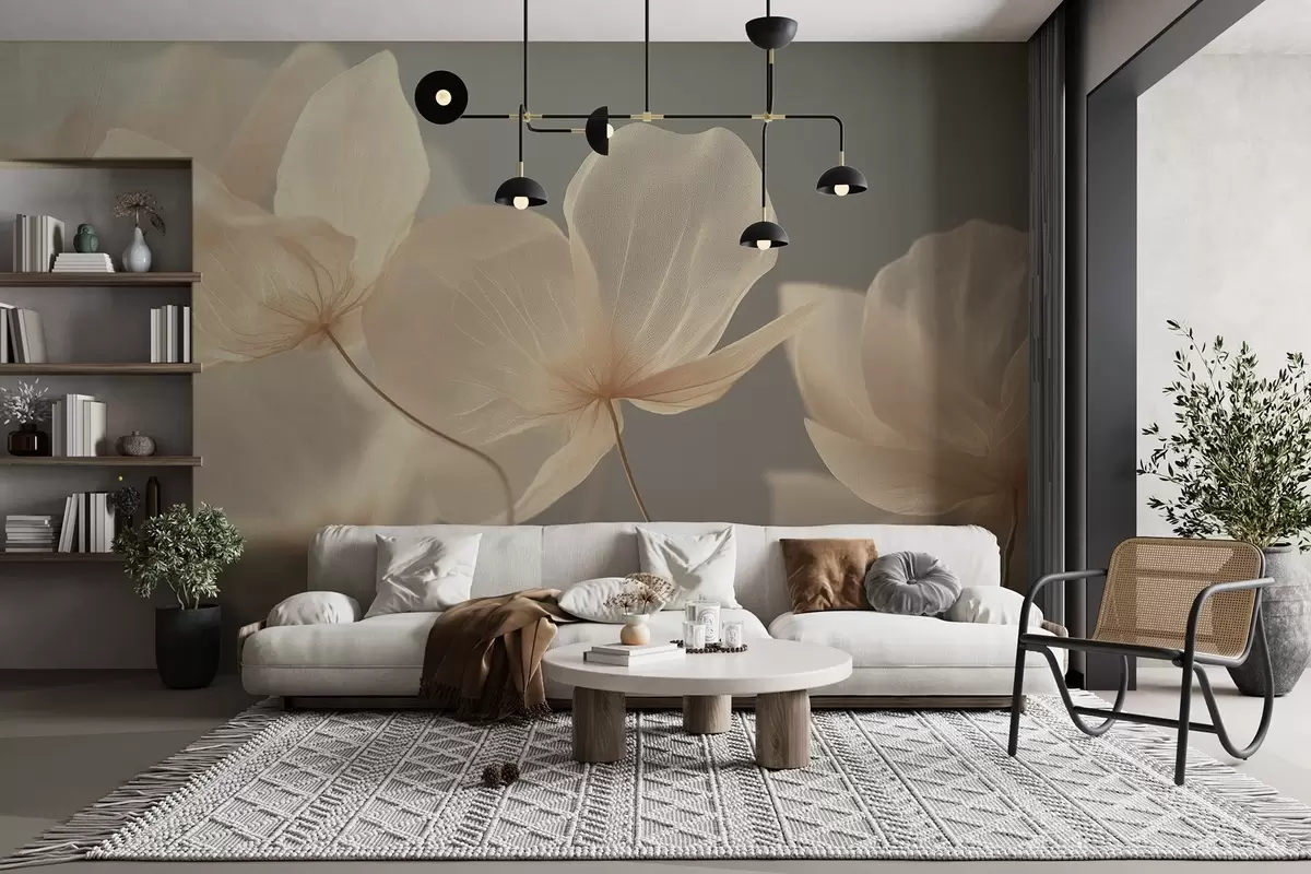 Фототапет Венчелистчета от лотос, деликатна композиция на сив фон Nr w08500v2