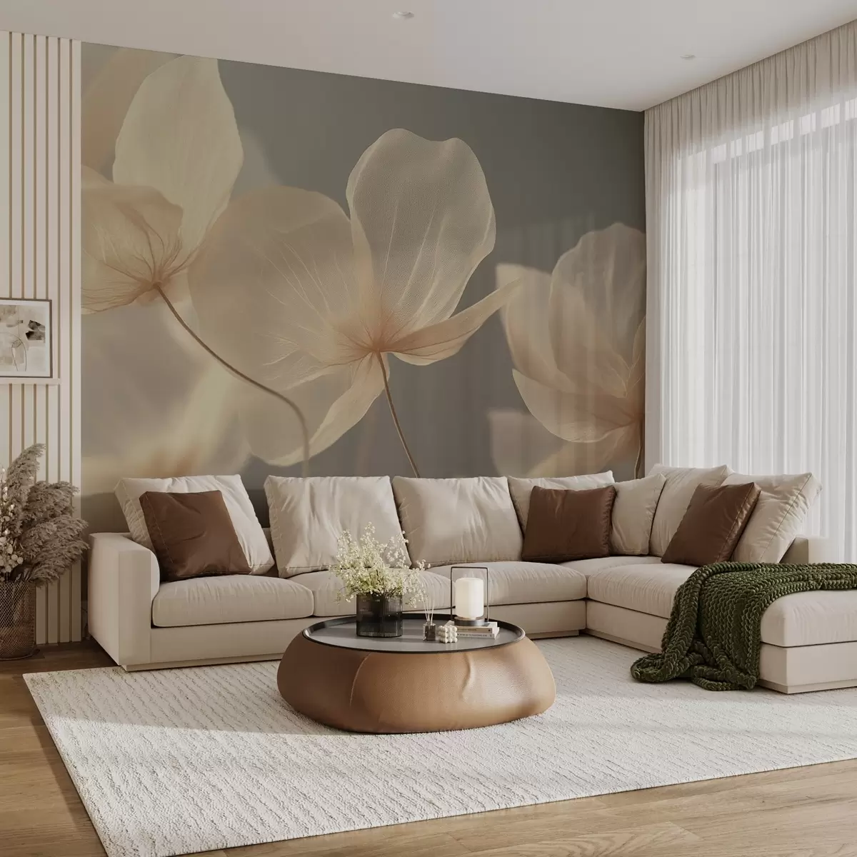 Фототапет Венчелистчета от лотос, деликатна композиция на сив фон Nr w08500v2