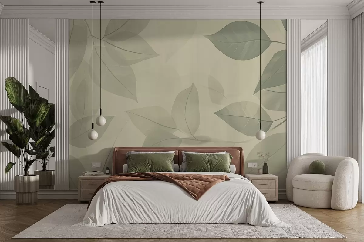 Фототапет Клони от зелени листа на мек бежов фон Nr w08502v2