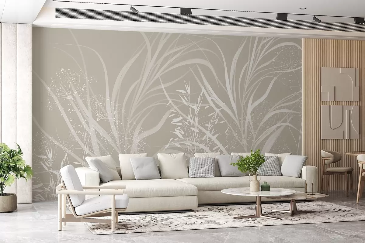 Фототапет Деликатен модерен минималистичен бял флорален принт на светъл пастелно-бежов фон Nr w08583