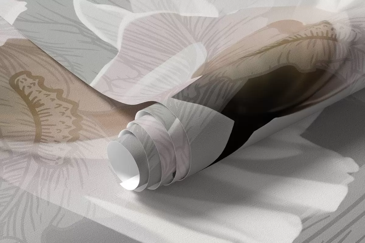 Фототапет Нежни розови и лилави макове със зелени стъбла и пъпки на мек, размазан текстуриран фон Nr w08585