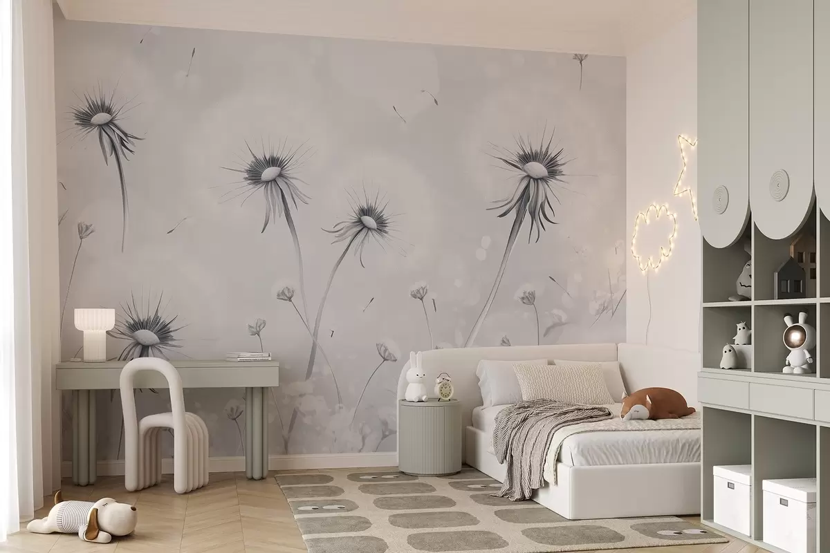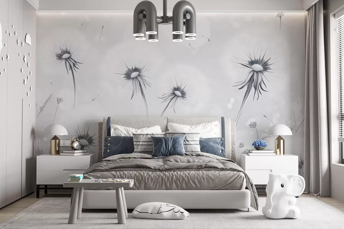 Фототапет Елегантни глухарчета и диви цветя в стил живопис в сини тонове Nr w08657v2
