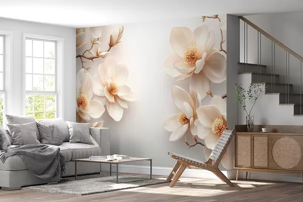 Фототапет Красиви цъфтящи кремави цветя магнолия на бял фон Nr w08704