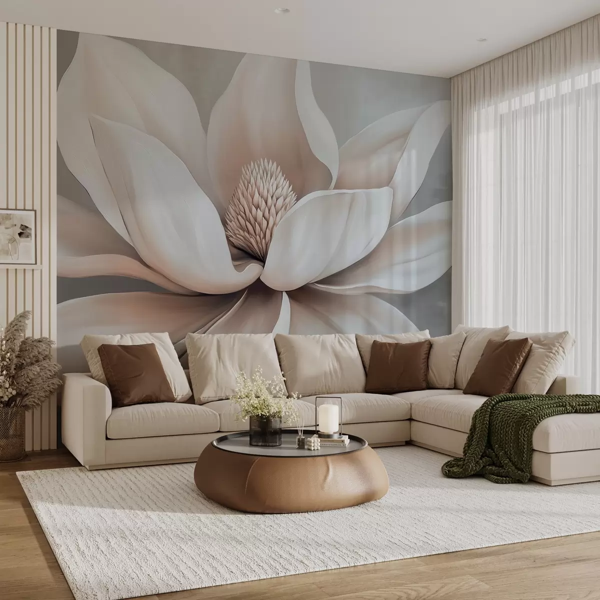 Фототапет Елегантно цвете магнолия с дълги, гладки венчелистчета на мек сив фон Nr w08705
