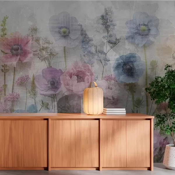 Фототапет Високи цветя от акварел на състарен фон Nr w08727
