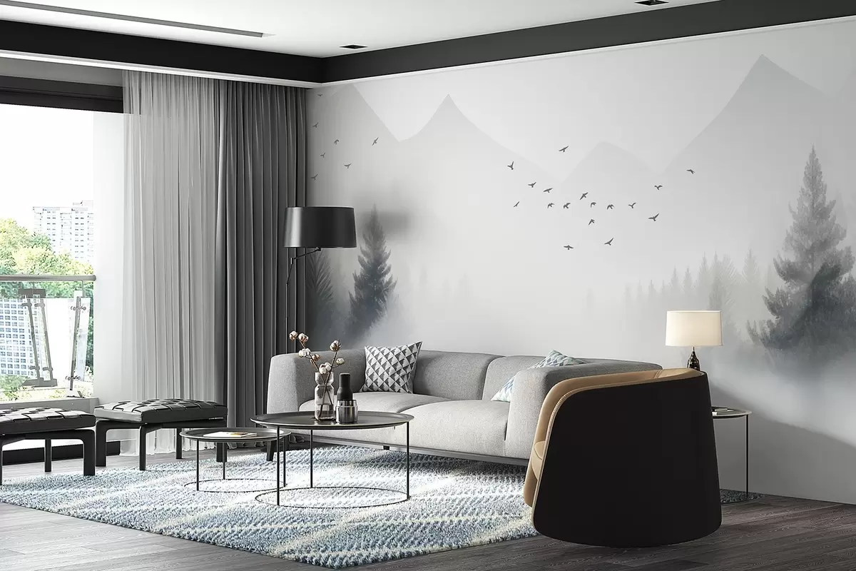 Фототапет Спокойна зимна гора на планински склон в нюанси на бяло и светлосиво Nr w08756