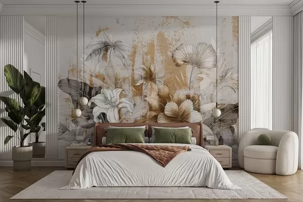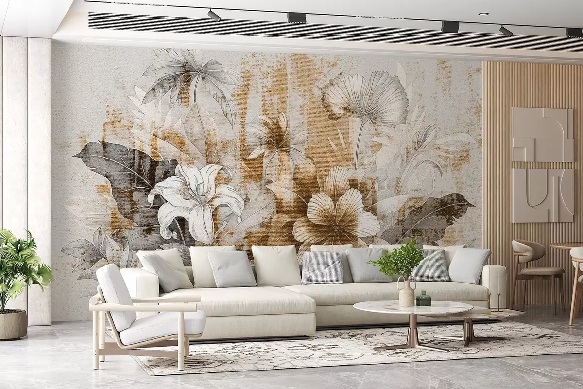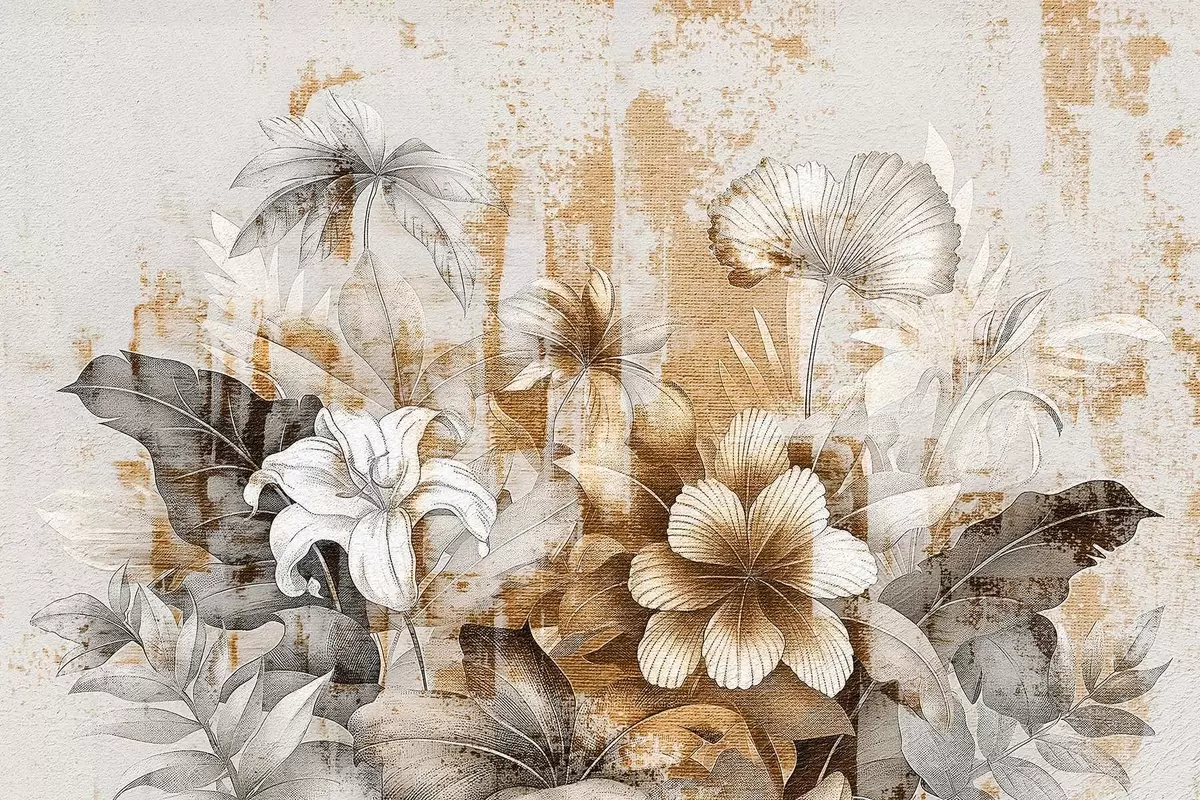Фототапет Винтидж дизайн с екзотични цветя и растения Nr w08767