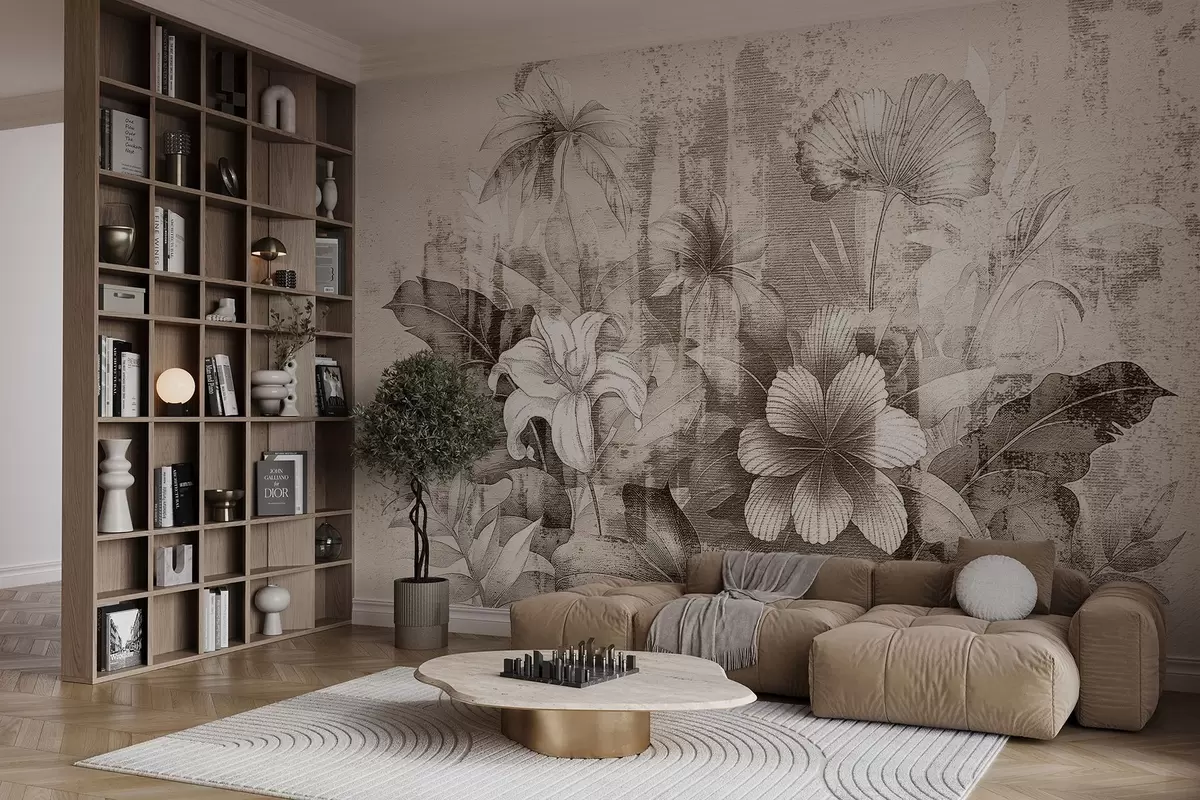 Фототапет Винтидж дизайн с екзотични цветя и растения Nr w08767v2