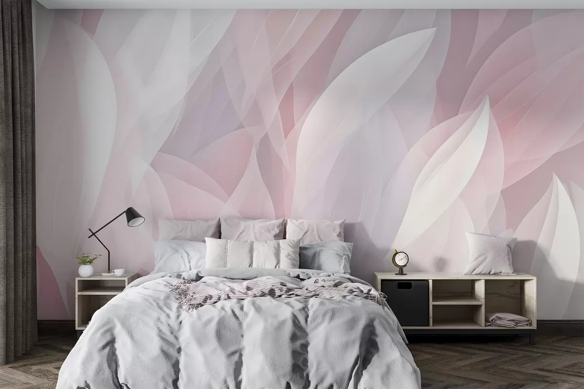 Фототапет Абстрактен дизайн с меки форми, наподобяващи венчелистчета, в розови и бели нюанси, които създават ефект на наслояване Nr w08774