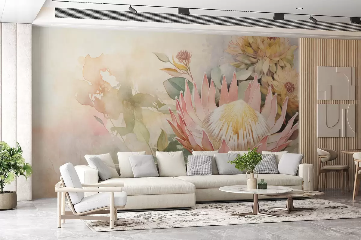 Фототапет Имитация на акварел, големи тропически цветя Nr w08796