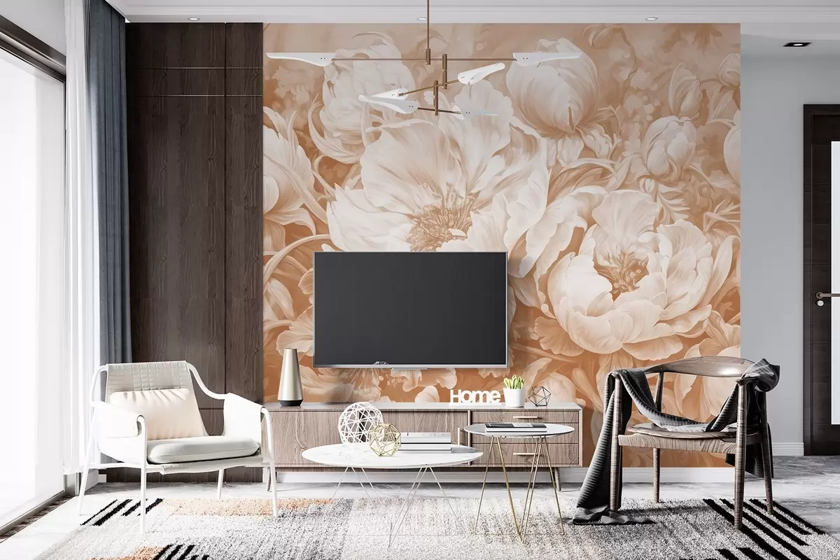 Фототапет Лалета и божури - флорална композиция в бежов стил с маслени боички Nr w08817v1