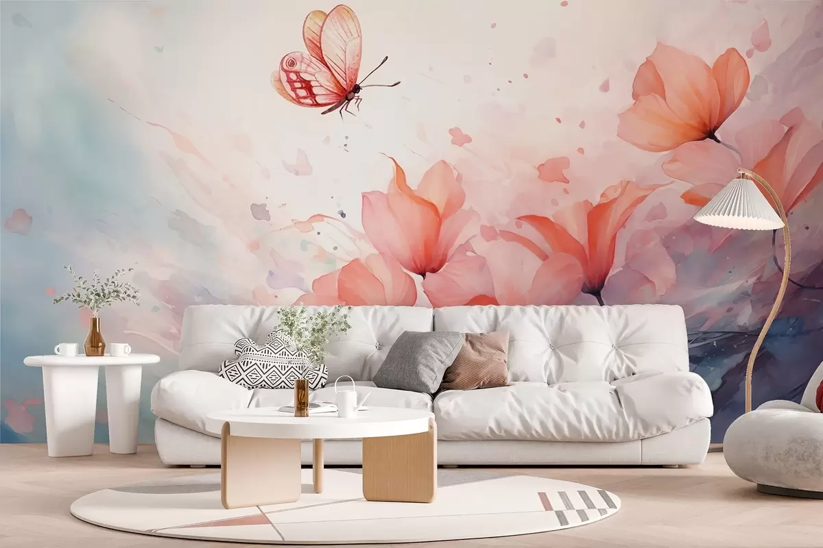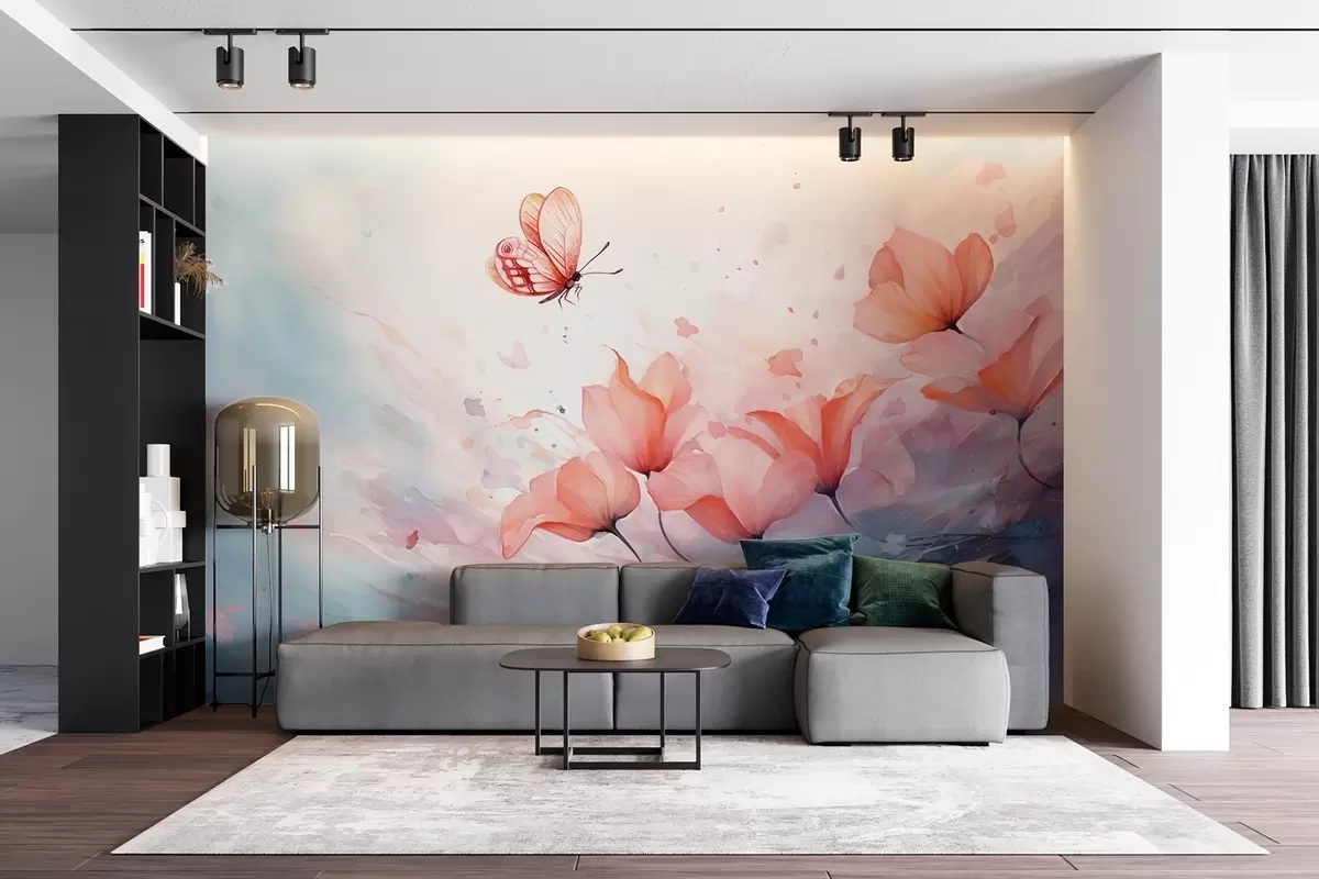 Фототапет Деликатни макове с пеперуда в акварелен стил Nr w08849