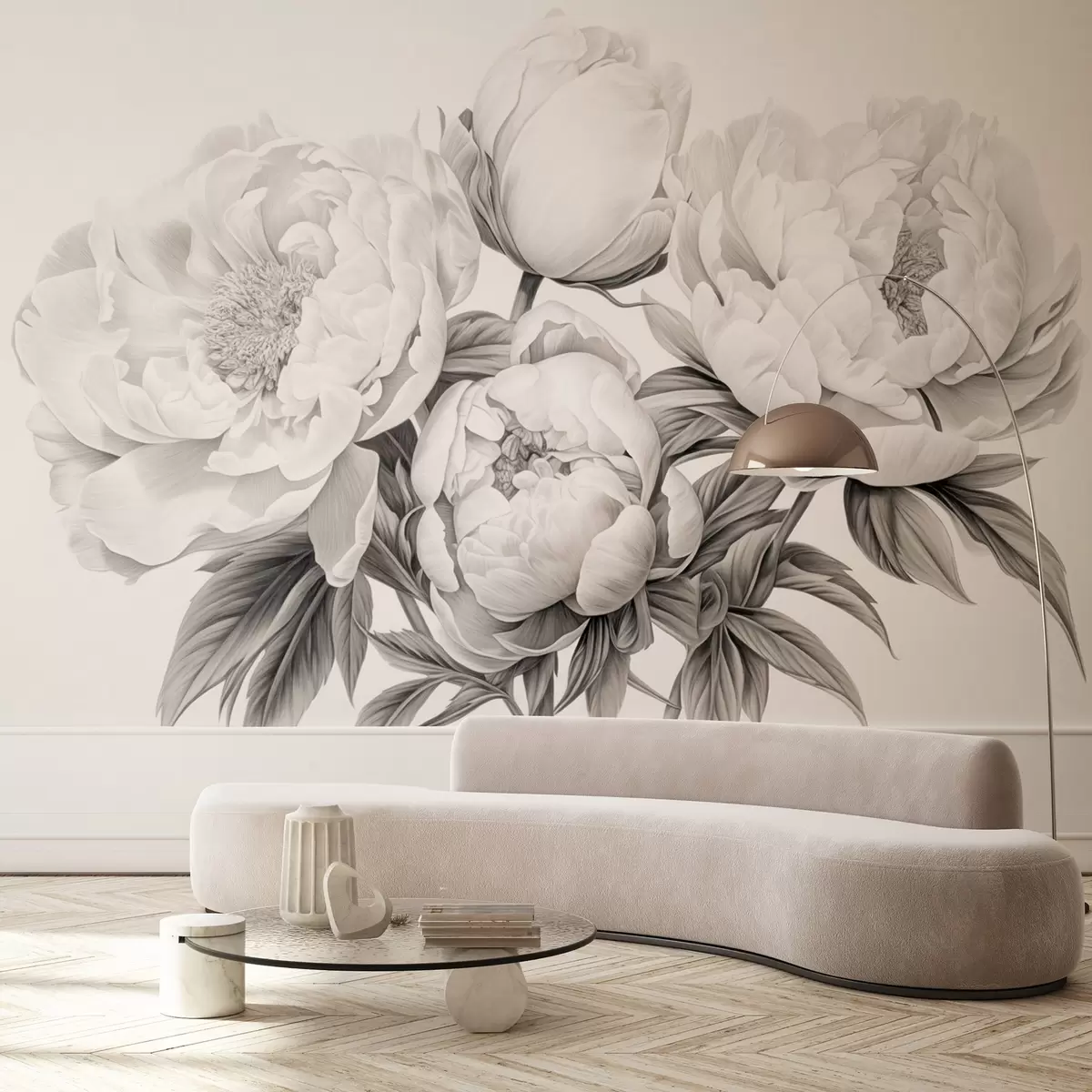 Фототапет Черно-бели божури в стил рисунка с молив Nr w08852