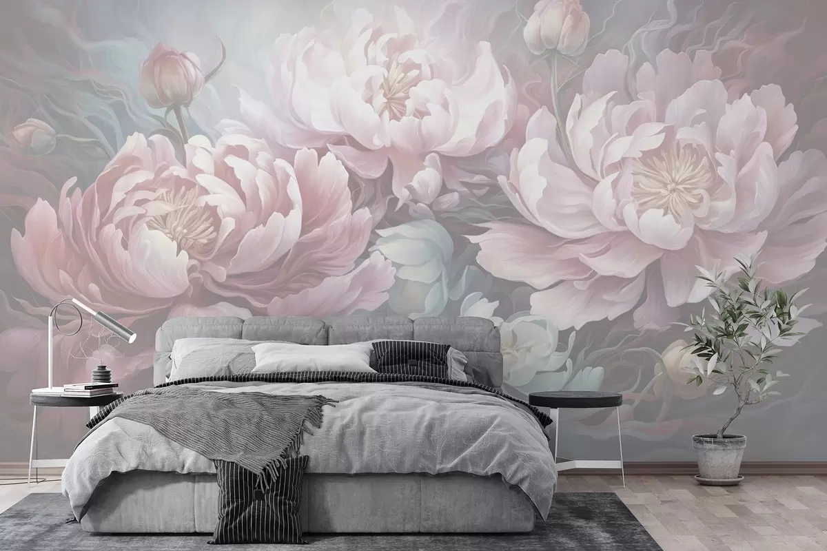 Фототапет Приказни божури в стил "четка" в хладни тонове Nr w08879v1