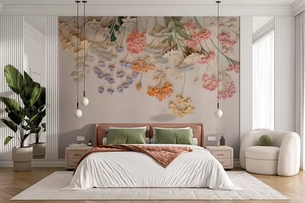 Фототапет Висящи обемни диви цветя на бежов фон Nr w08940