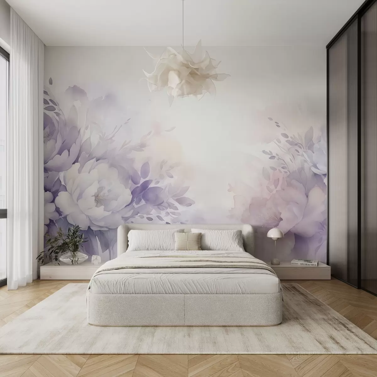 Фототапет Големи нежни люлякови цветя, имитация на акварел Nr w08946