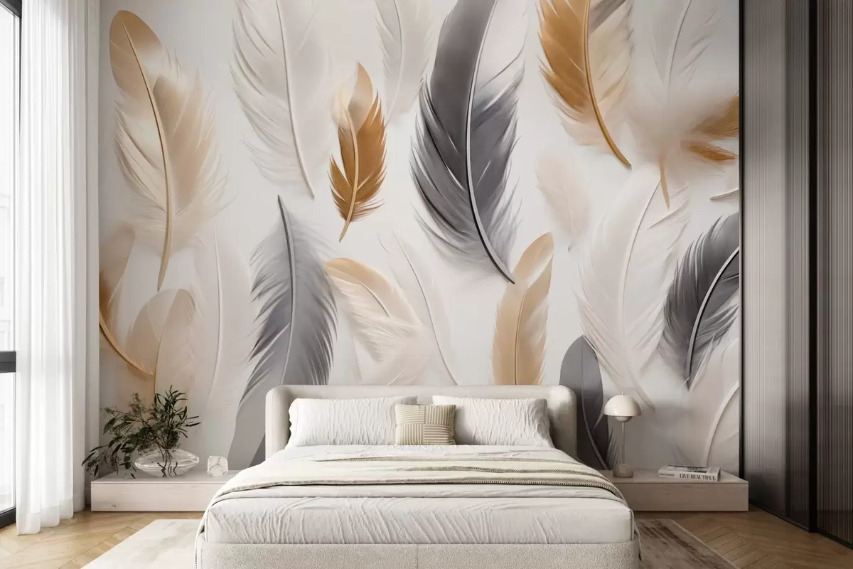 Фототапет Бежово-сиви пера в меки, спокойни тонове Nr w08955