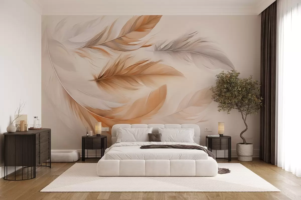 Фототапет Плаващи въздушни кафяво-сиви пера Nr w08968