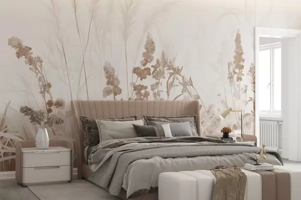 Фототапет Кафяви цветя и бежова тръстика в полето, минималистична текстура на картината, светъл фон, меки цветове, деликатни мазки на четката Nr w08982v1