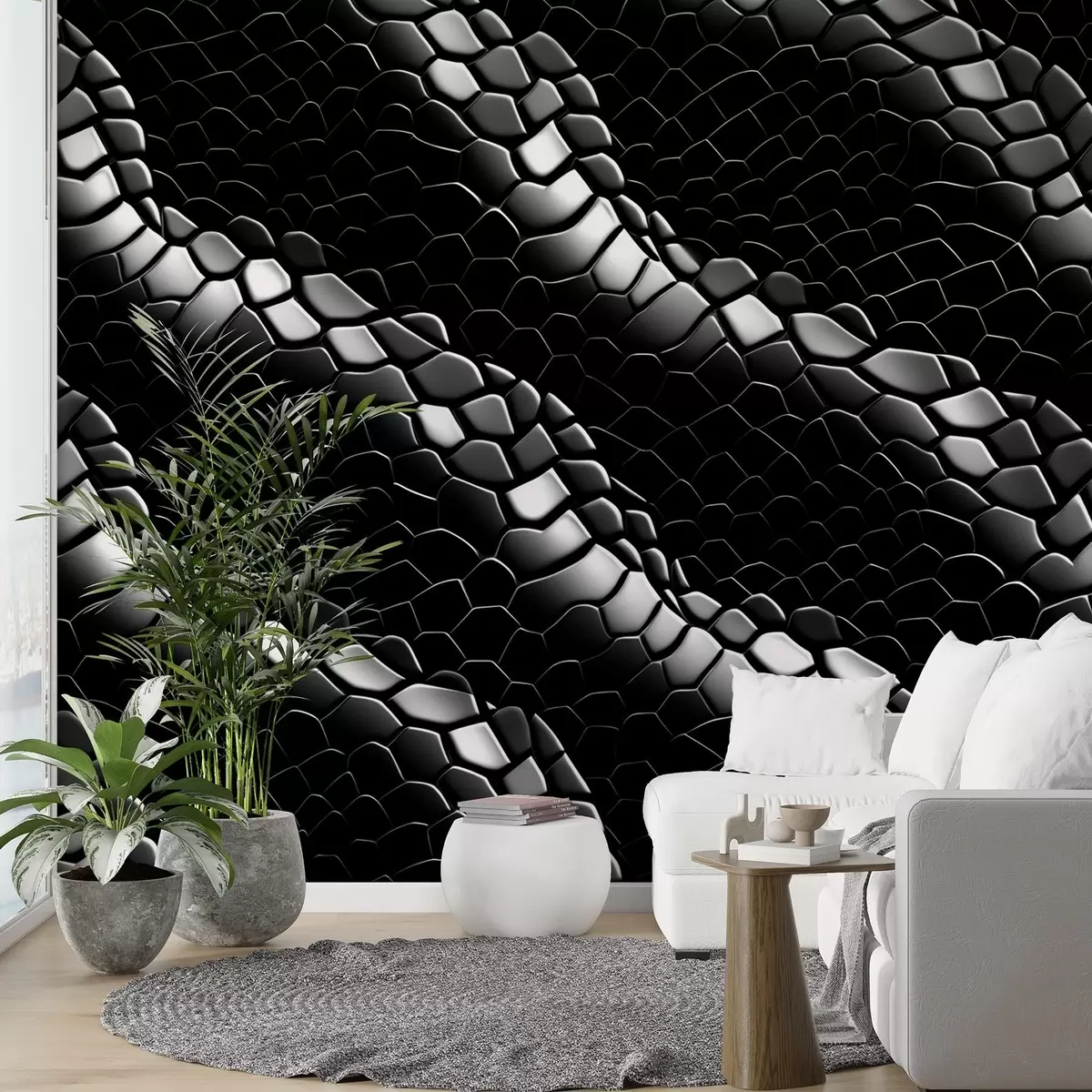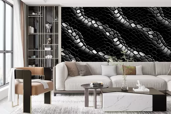 Фототапет Черно-бели вълни с текстура на змийска кожа Nr w08995