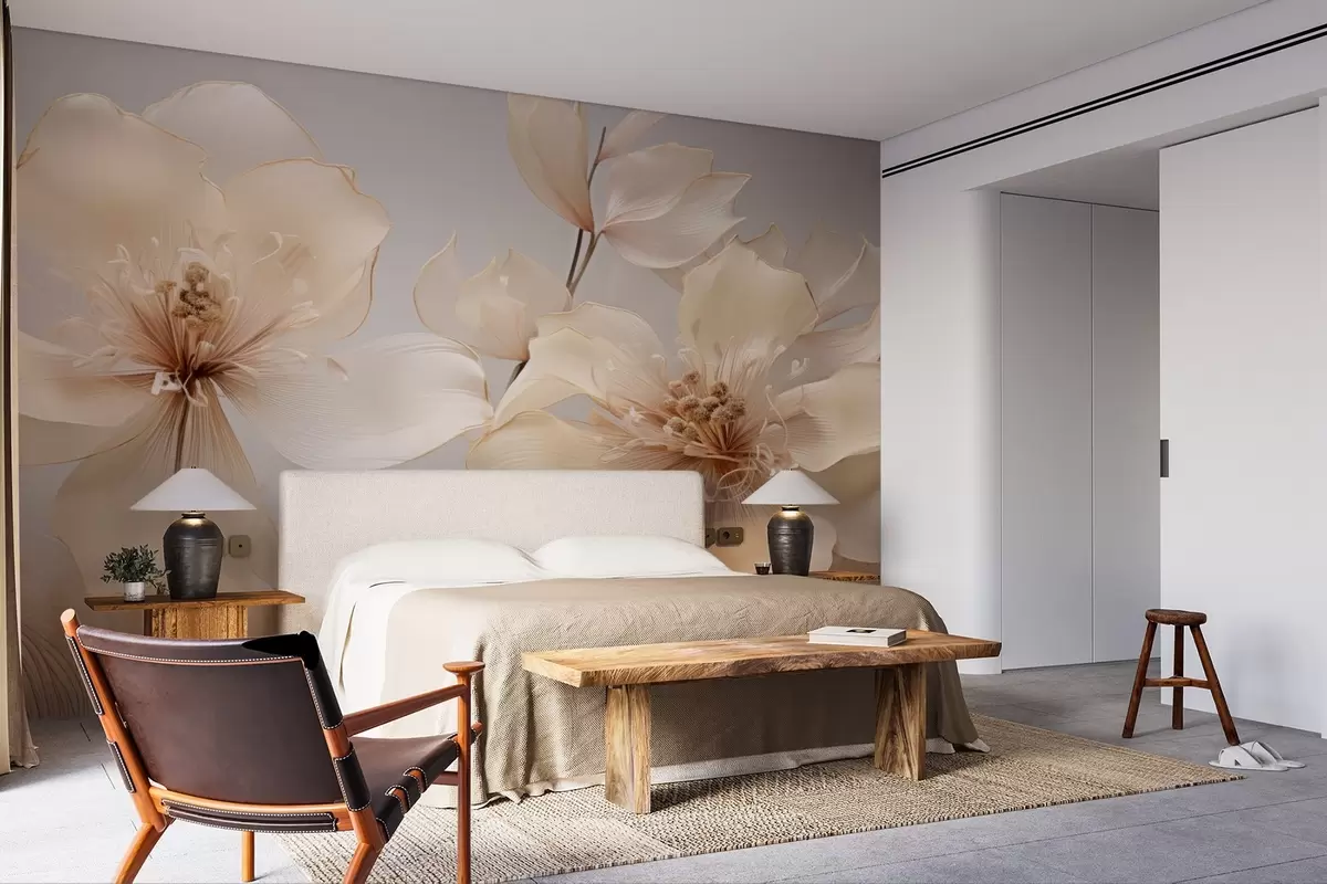 Фототапет Бежови въздушни цветя в меки тонове Nr w09016