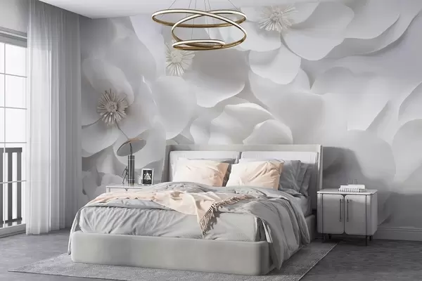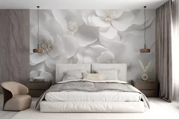 Фототапет Бели цветя с деликатни венчелистчета, подредени в плътен грозд, създаващи усещане за чистота и елегантност на бял фон Nr w09053