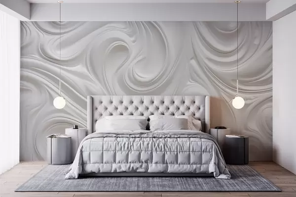 Фототапет Бяло абстрактно модерно изкуство с плавни вихри и вълни, гладка текстура, елегантен дизайн, минималистична естетика Nr w09059