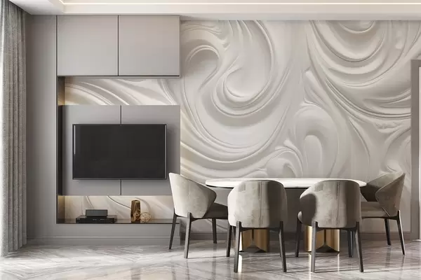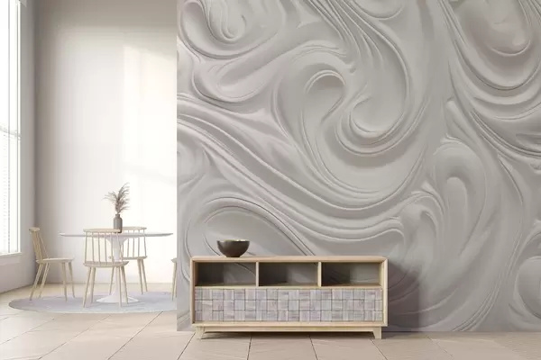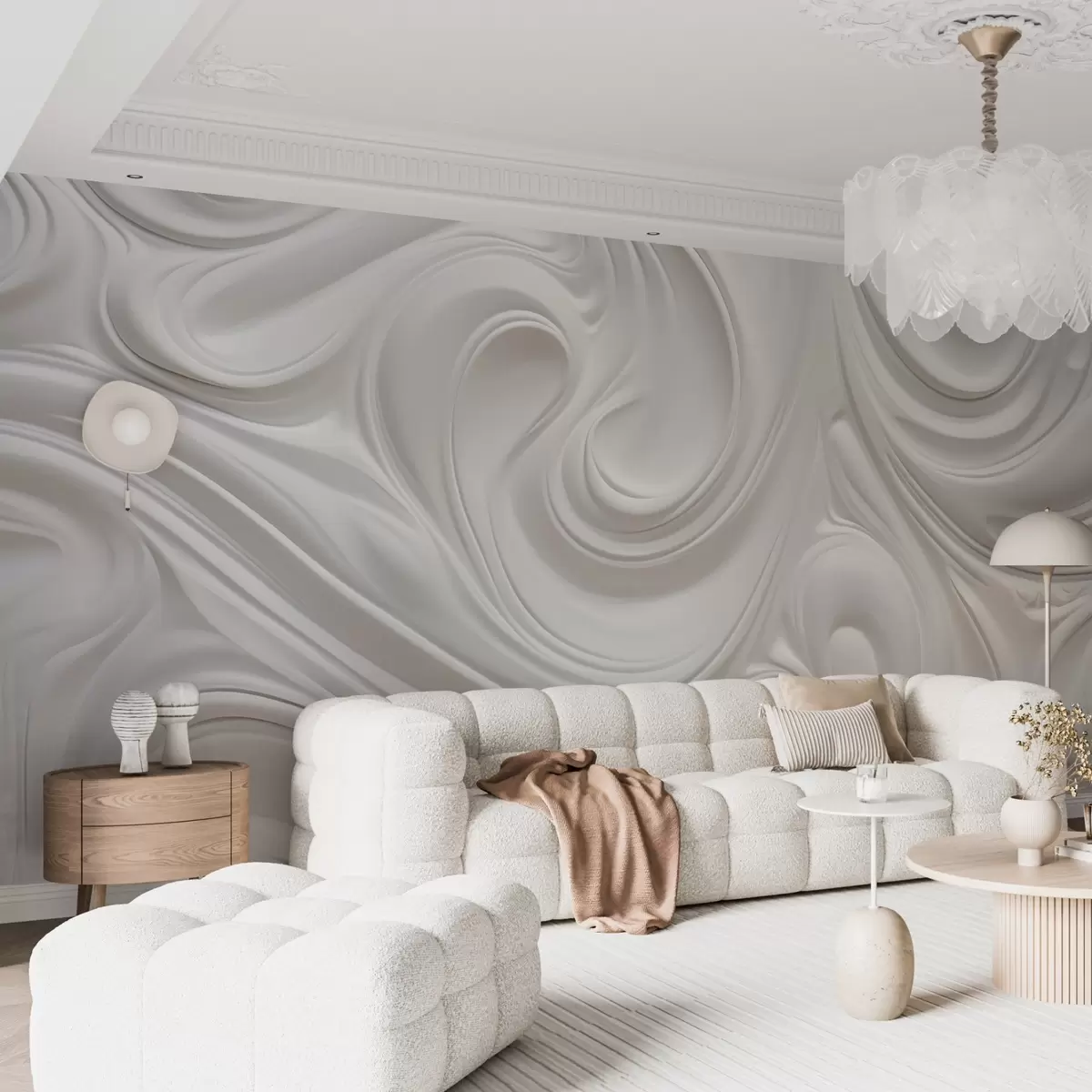Фототапет Бяло абстрактно модерно изкуство с плавни вихри и вълни, гладка текстура, елегантен дизайн, минималистична естетика Nr w09059